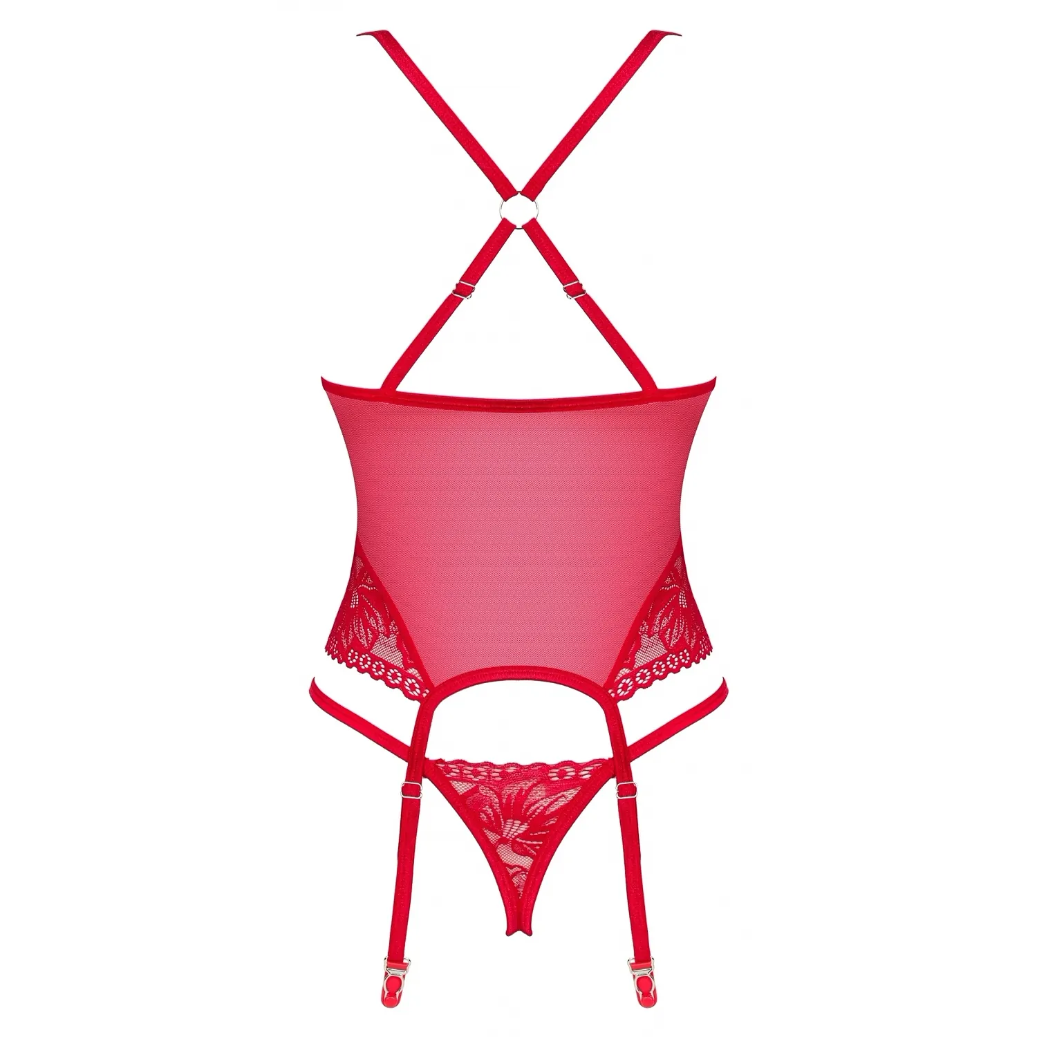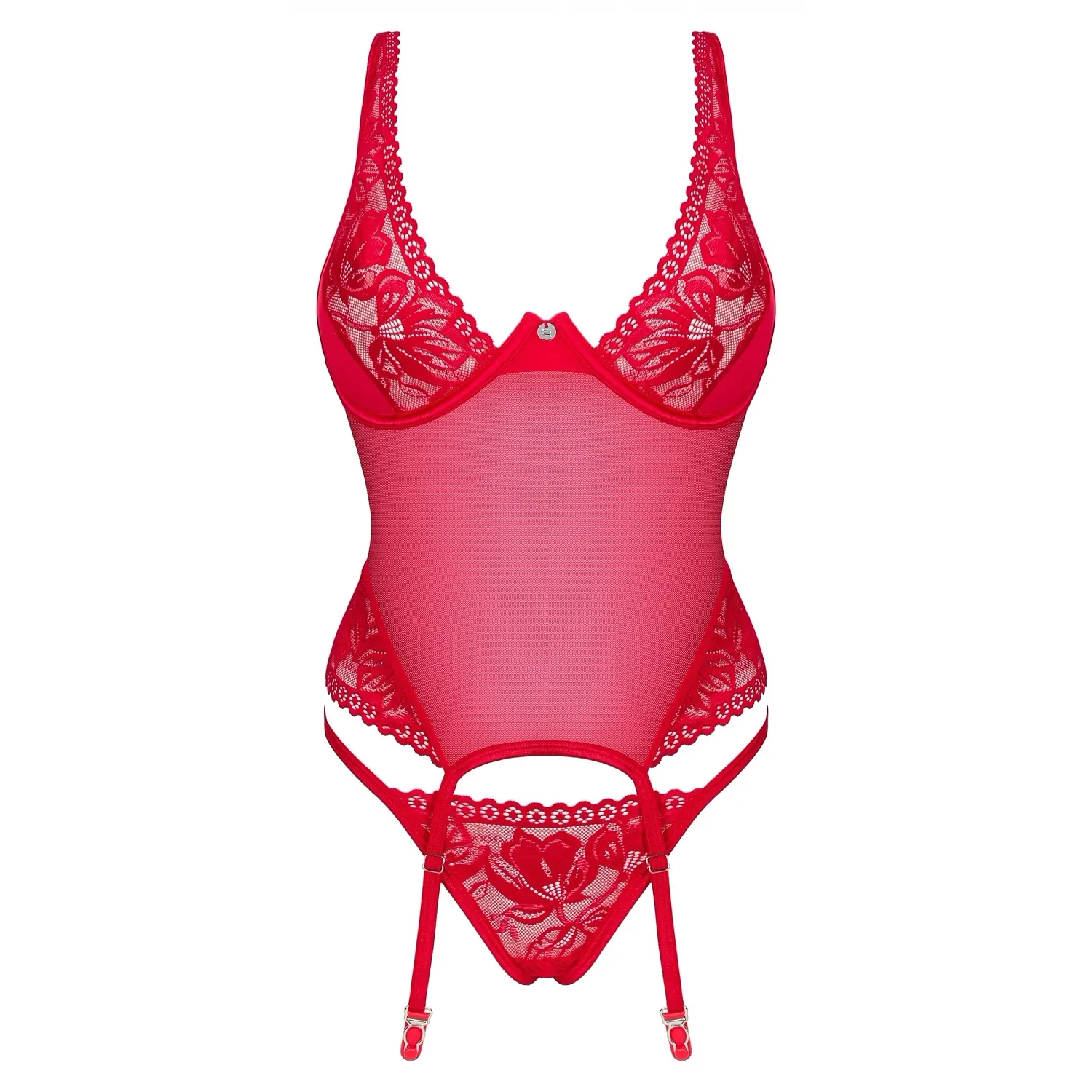 Corset Obsessive Lacelove Roșu este o piesă de lenjerie uimitoare și neasemuit de captivantă, imprimată și fabricată de remarcabilul brand de lenjerie Obsessive din Polonia.