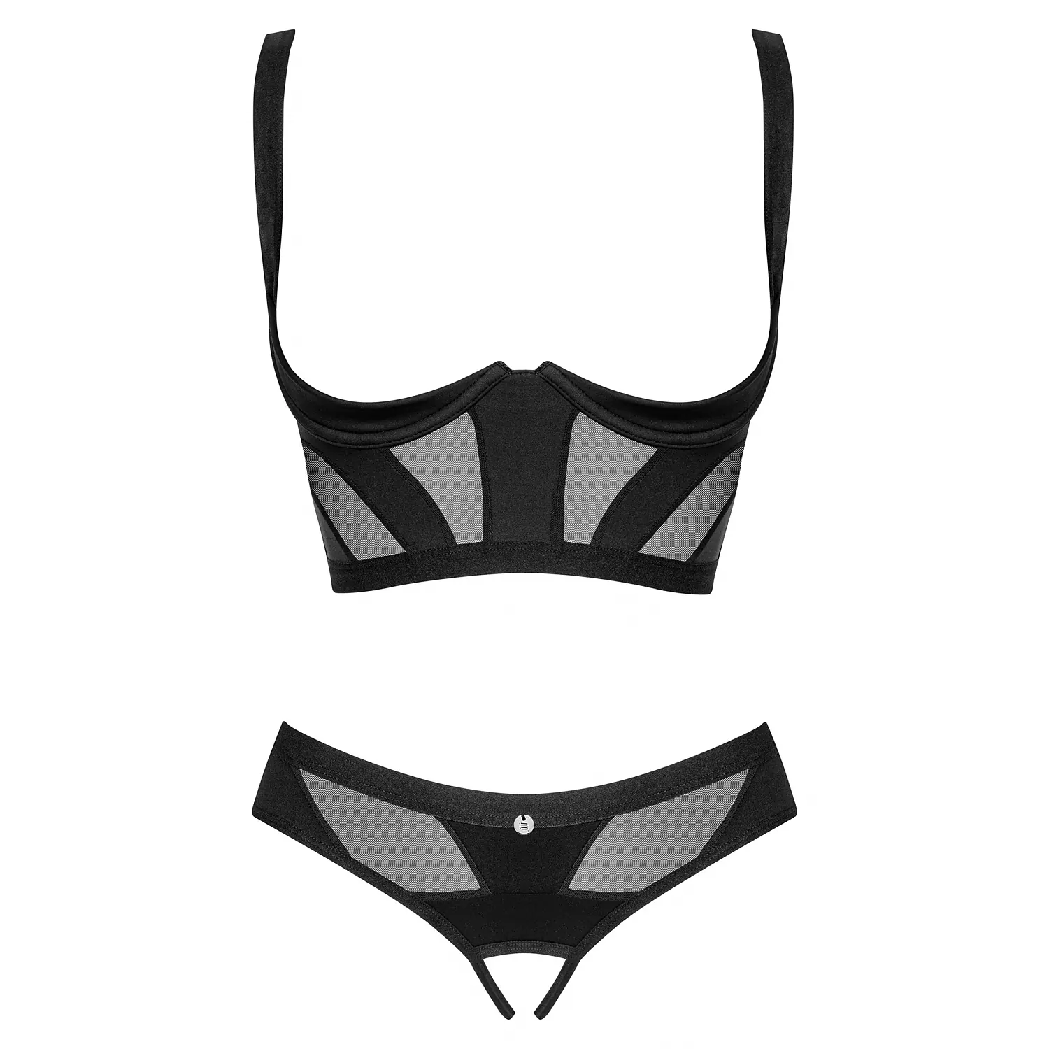 Set Obsessive Chic Amoria 2 Piese Decupat închis la culoare este o piesă de lenjerie nemaipomenită și neînchipuit de tentantă, reprezentată grafic și fabricată de importantul brand de lenjerie Obsessive din Polonia.