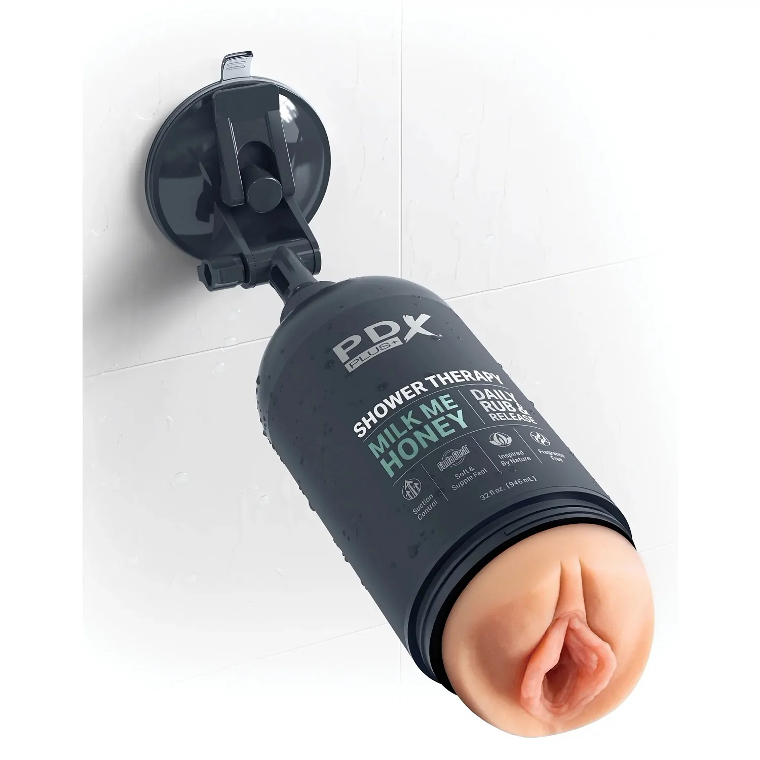 Oricât de discret este masturbatorul Shower Therapy Milk Me Honey de la PDX Plug arată din exterior ca o sticlă normală de șampon. Dar sub capacul inferior se ascunde o replică a vaginului strâns cu o textură captivantă pentru un frecție puternic al falusului în timpul unui joc solo.