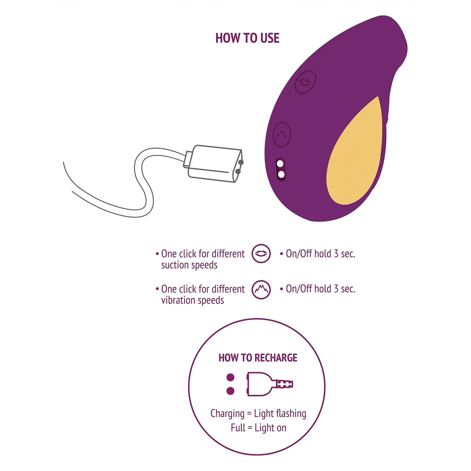 Pentru o glidare mai ușoară ar fi de favorit achiziționarea unui lubrifiant. Spălați Divine Love Stimulator Mov atât înainte cât și după utilizare cu o formulă speciala de igienă pentru astfel de produse.
