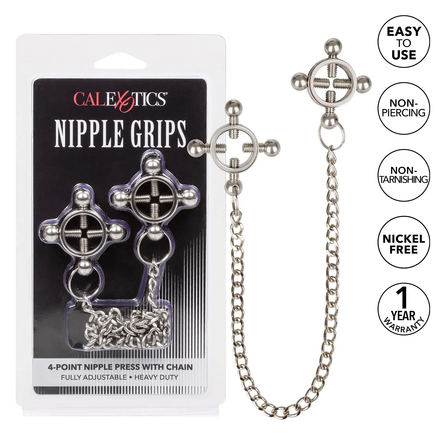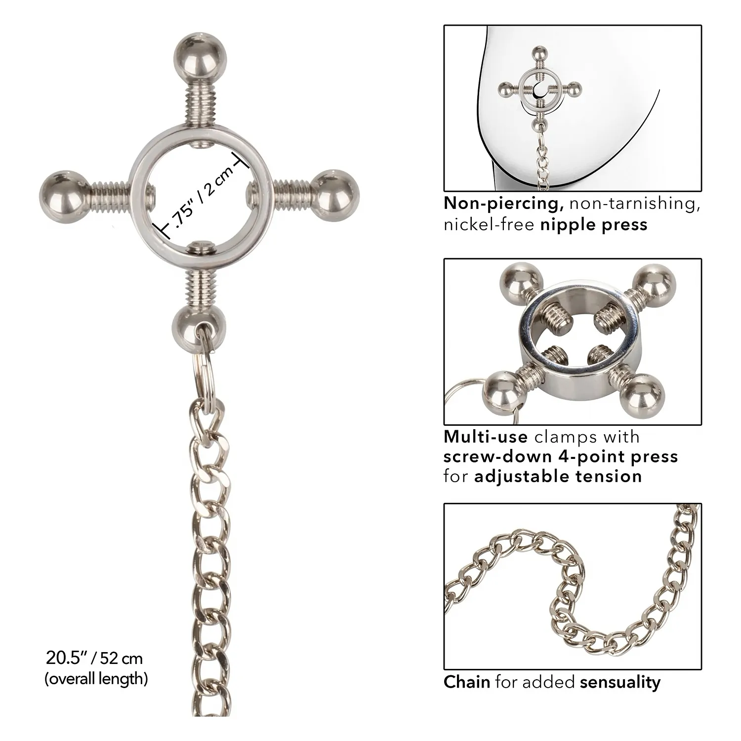 Intensifică senzația la următorul nivel și bucură-te de jocul tachinat al sfârcurilor cu Nipple Grips 4-Point Nipple Press with Chain.