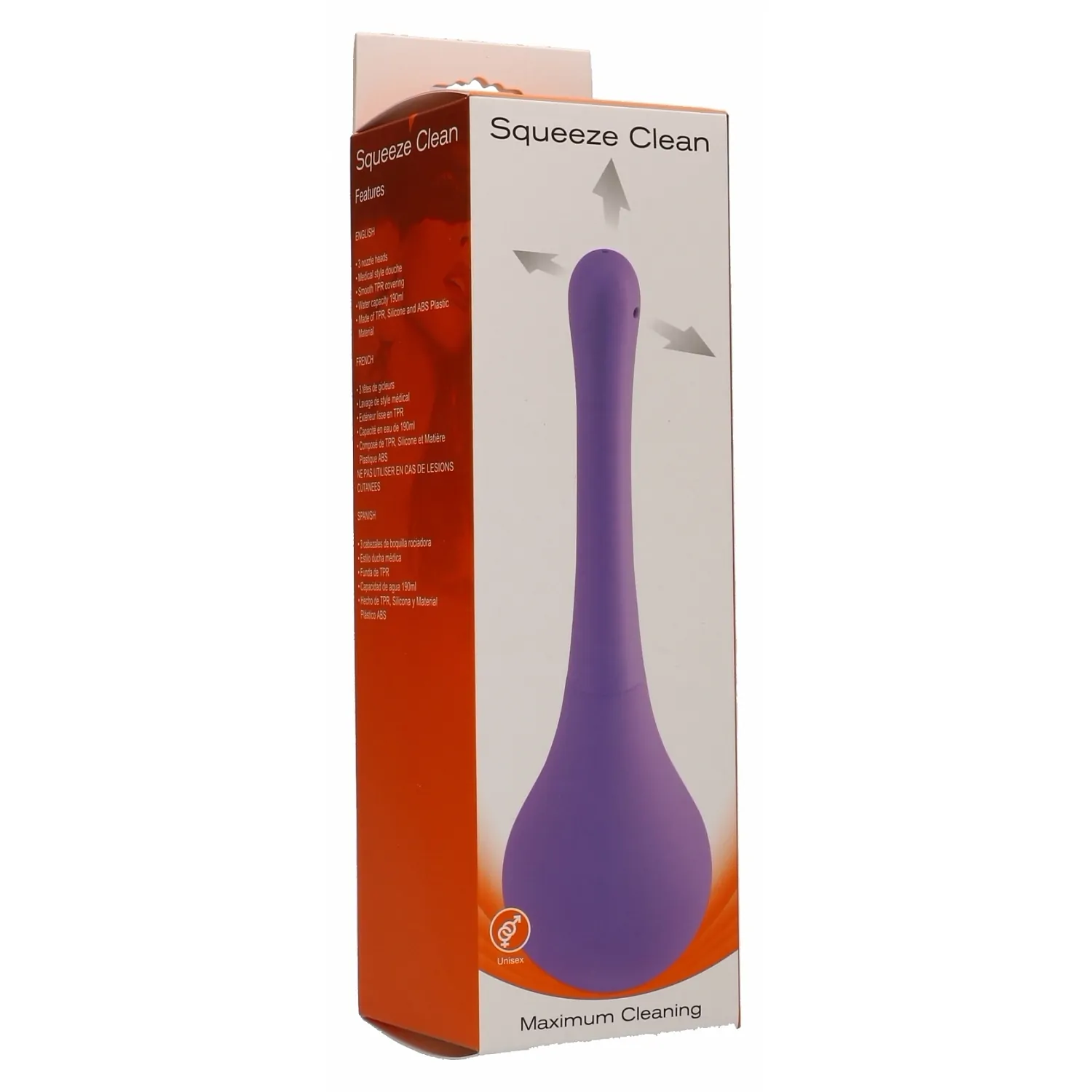 Irigatorul Squeeze Clean are o acoperire netedă din TPR și trei deschideri mici pentru eliminarea apei.