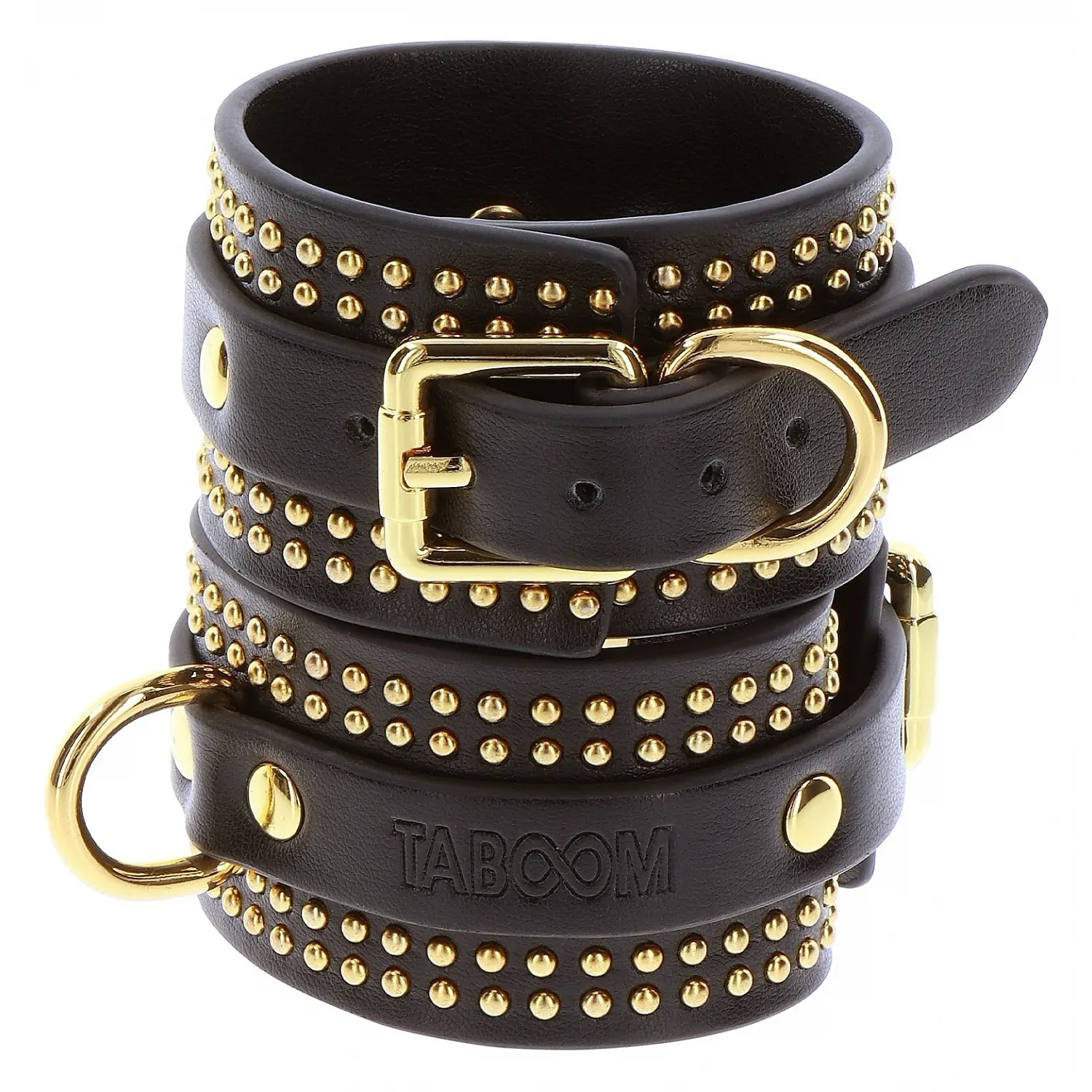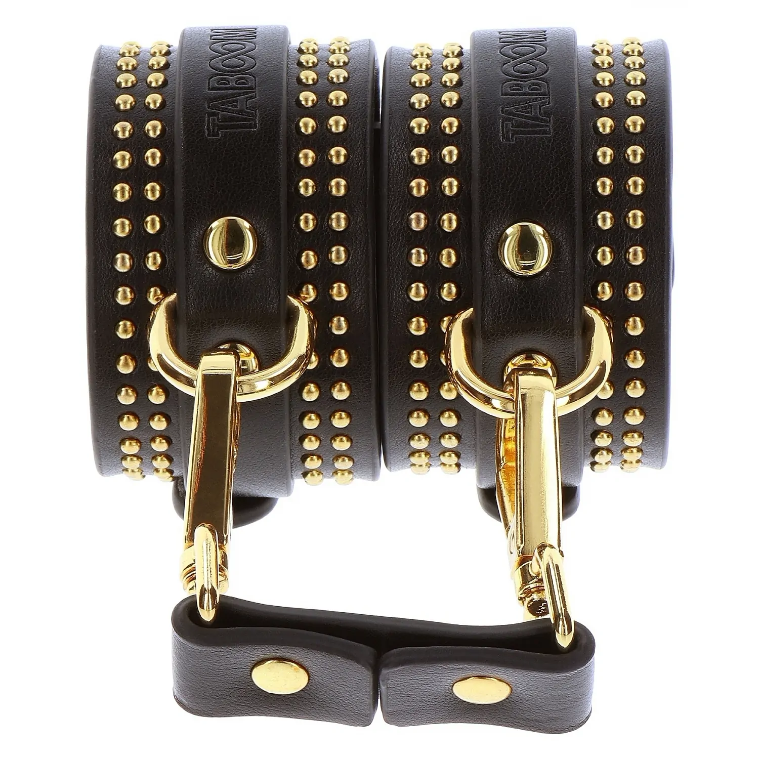 Realizate din tegument ecologică neagră și decorate cu detalii aurii din metal fără nichel, cătușele emană o aspect de lux, iar contrastul de culori nu doar adaugă o notă de glamour, ci și accentuează puterea și pasiunea care vin odată cu explorarea dorințelor tale.