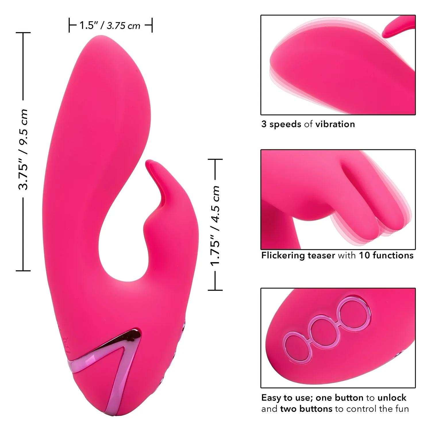 Lungimea sa inserabilă este de 9.5 cm, iar diametrul maxim este de 3.8 cm. Brațul scurt, care seamănă cu un iepure, îți va răsfăța clitorisul. Îți va oferi 10 moduri de vibrație pe care trebuie să le experimentezi.