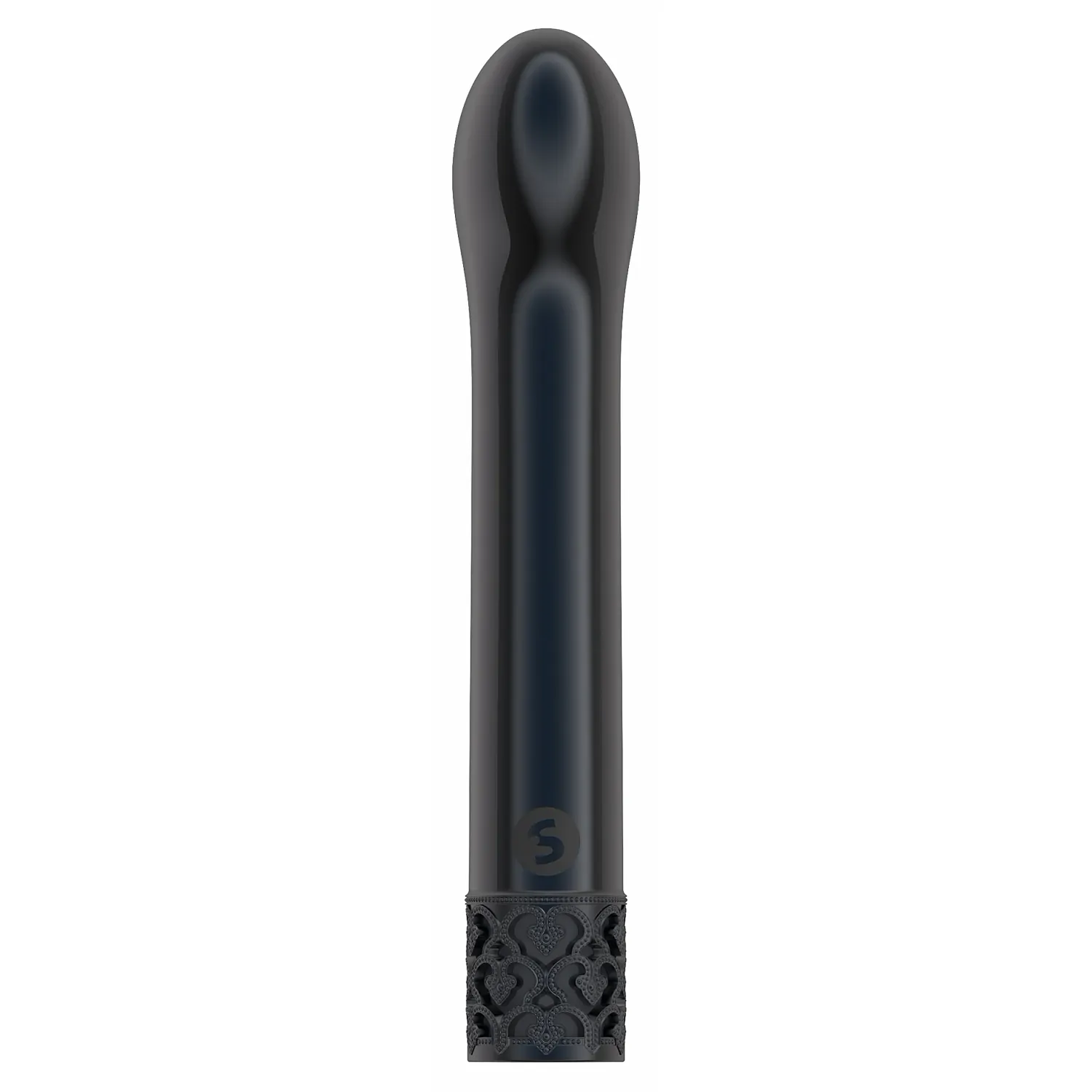 Nu trebuie să fii regal pentru a te bucura de această linie elegantă. Finisajul elegant din metal face din acest vibrator bijuteria coroanei oricărei colecții. Vârful arcuit al BIJUTERII este ireproșabil pentru desfătările interne sau externe.
