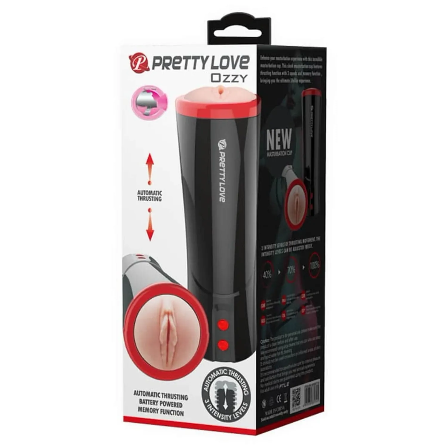 - Masturbatorul Ozzy este conceput după forma autentică și naturală a vaginului, permițându-ți astfel să te bucuri de o penetrare realistică, fără o parteneră. - Masturbatorul are un sistem automat de împingere sus-jos a falusului și vibrează. - Masturbatorul Ozzy de la Pretty Love este prevăzut cu funcția de vorbire astfel că puteți alege una din cele 3 voci care vor geme pentru o stârnire suplimentară. - Sunetul gemetelor îl veți auzi în căștile care vin la pachet cu masturbatorul. - Ozzy are funcție de memorie astfel că puteți salva modul de deplasare favorit și vocea dorită pentru următoarele sesiuni de joc solo.