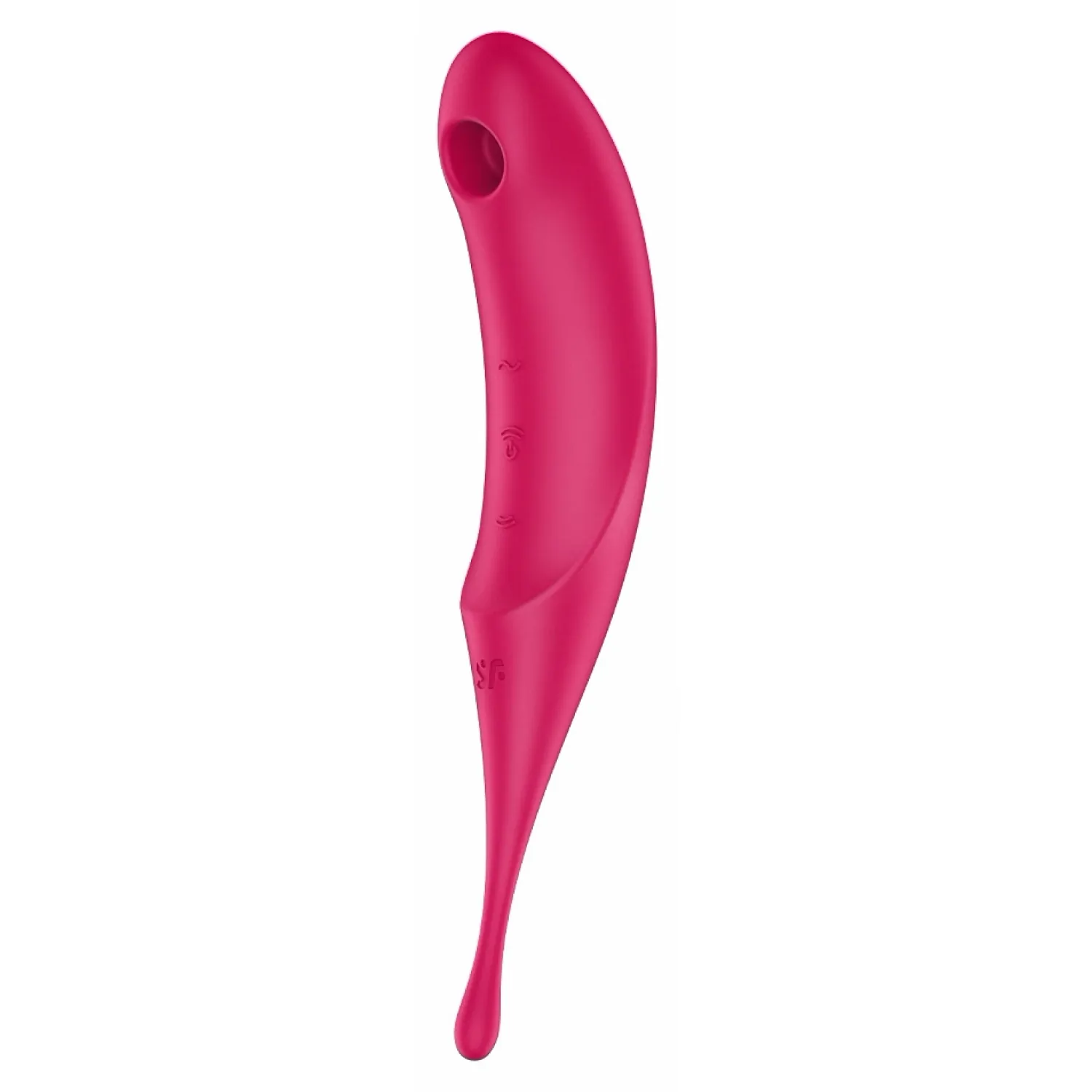 Satisfyer Twirling Pro poate fi folosit pe ambele capete și vă va răsfăța cu pricepere, cu valuri de presiune incitante și vârful vibrant.