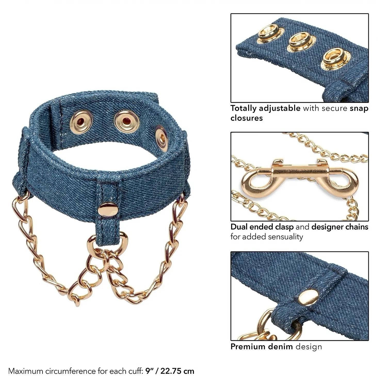 Vă propunem manșetele din colecția premium de denim Ride Em, un amestec sublim de stil, confort și reținere pentru aventurile dumneavoastră BDSM. Aceste manșete sunt gândite pentru a oferi o potrivire sigură și reglabilă, emanând în același timp o notă de sofisticare cu materialul lor denim.