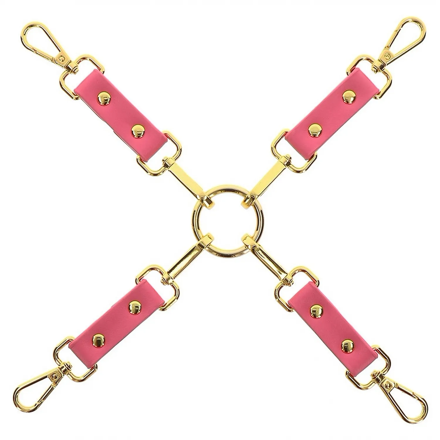 Dezlănțuiți dorința cu Taboom Malibu. Confecționat din piele PU vegană roz și împodobit cu detalii metalice aurii, acest accesoriu emană rafinament. Reține mâinile și picioarele la spate.