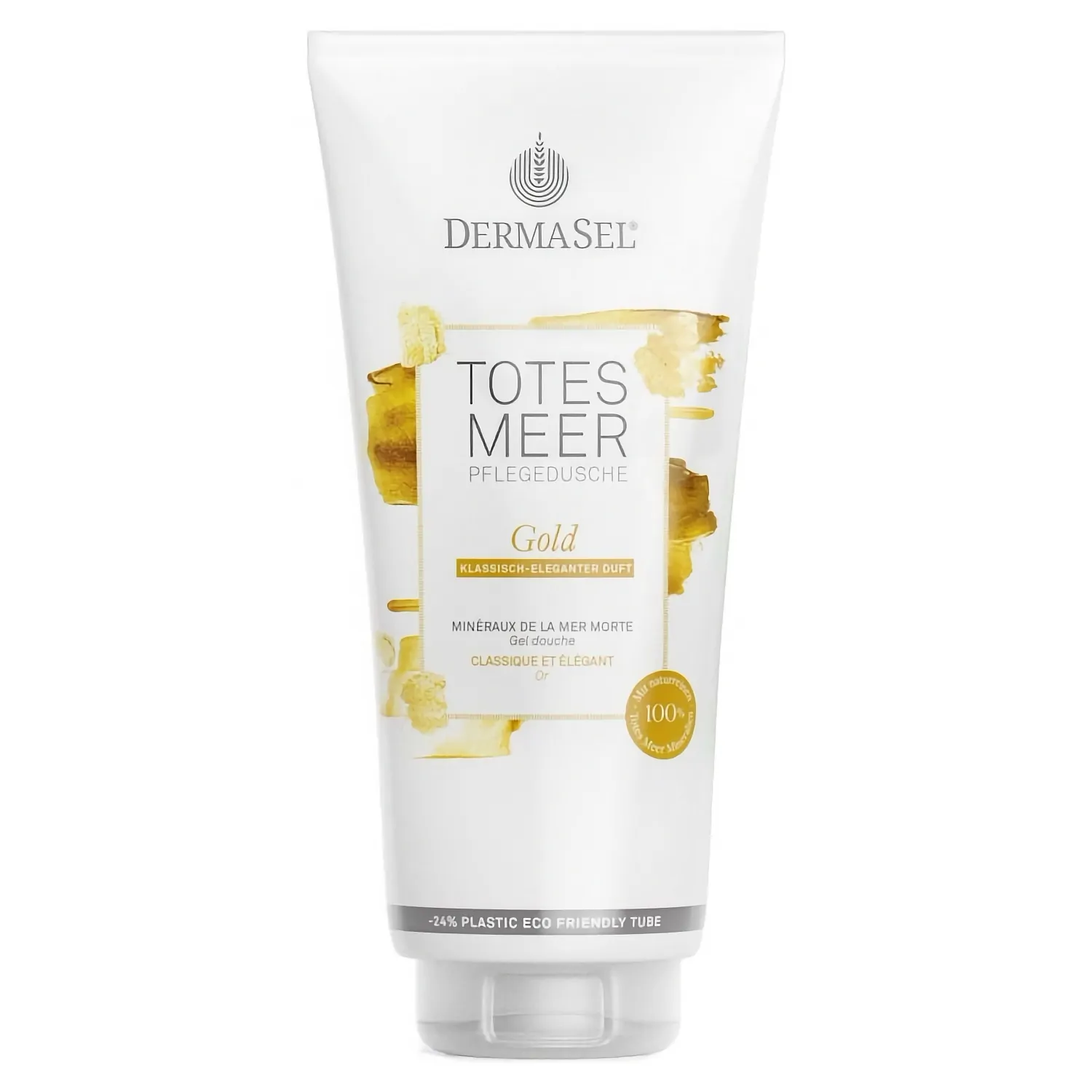 Îngrijire duș cu aur și minerale Dermasel 200 ml. Îngrijirea duș cu aur și minerale de la Marea Moartă DermaSel(R) oferă zilnic clipe de igienă rafinate pentru simțuri! Spuma moale ușoară transmite o senzație de epidermă netedă, oferind un răsfăț unic - pentru momentele de îngrijire luxoase. Unirea deosebită de minerale reale din Marea Moartă și mărgele de frumusețe de nuanță aurie cu vitamina E și alginina păstrează umiditatea dermei și face ca acest duș de îngrijire să fie ceva foarte special.