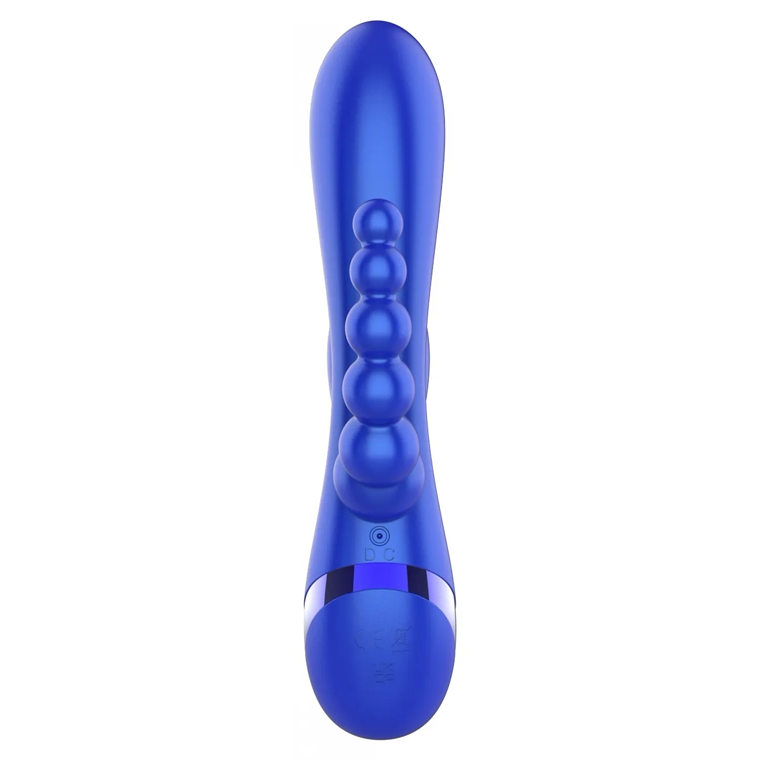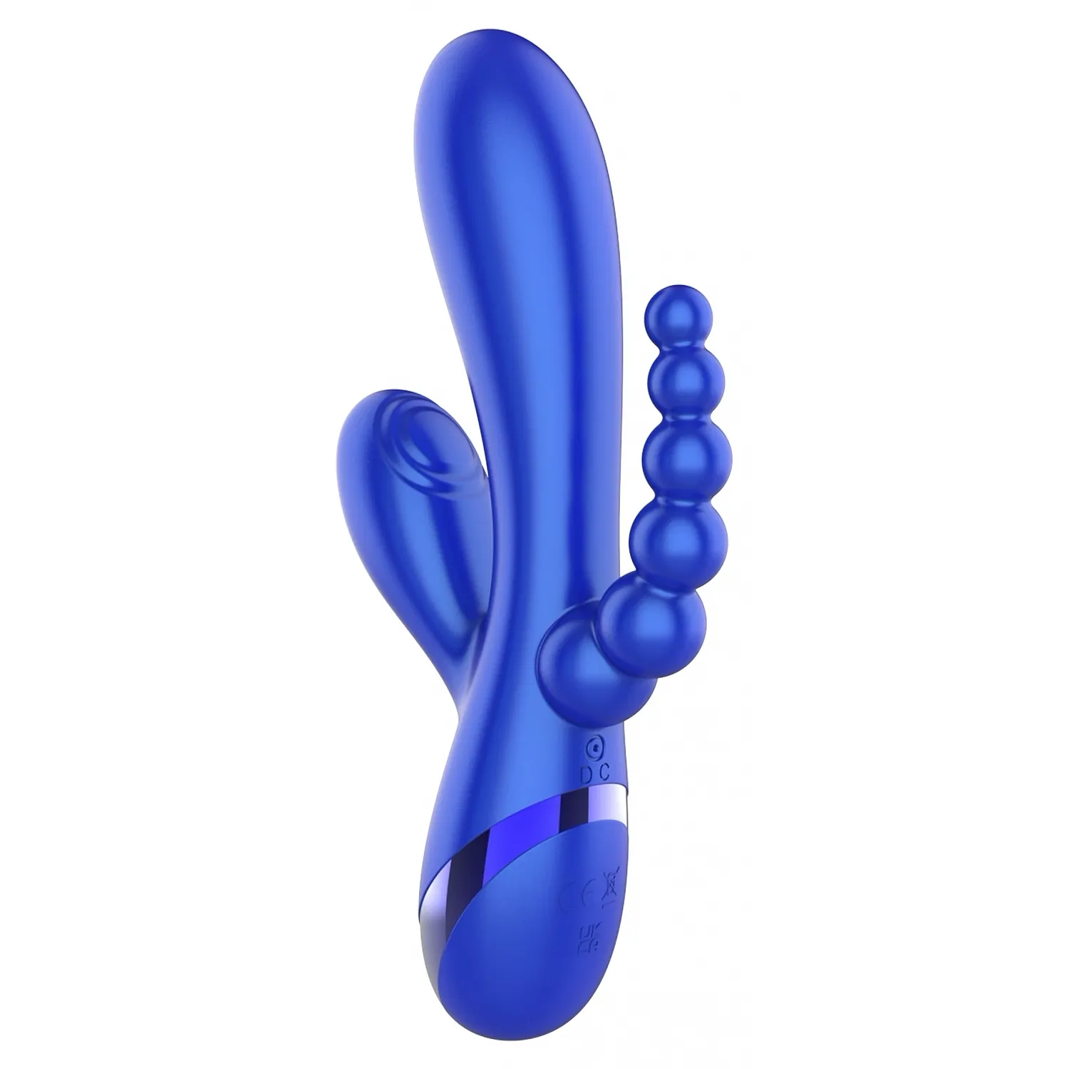 Triple Love Vibrator Albastru acordă funcții multiple, inclusiv stimulare ritmică prin vibrații și mărgele din silicon fin pentru confort. Designul maleabil și materialele delicate asigură utilizare versatilă, fiind conceput pentru a dărui senzații puternice și plăcute, adaptate diverselor preferințe.
