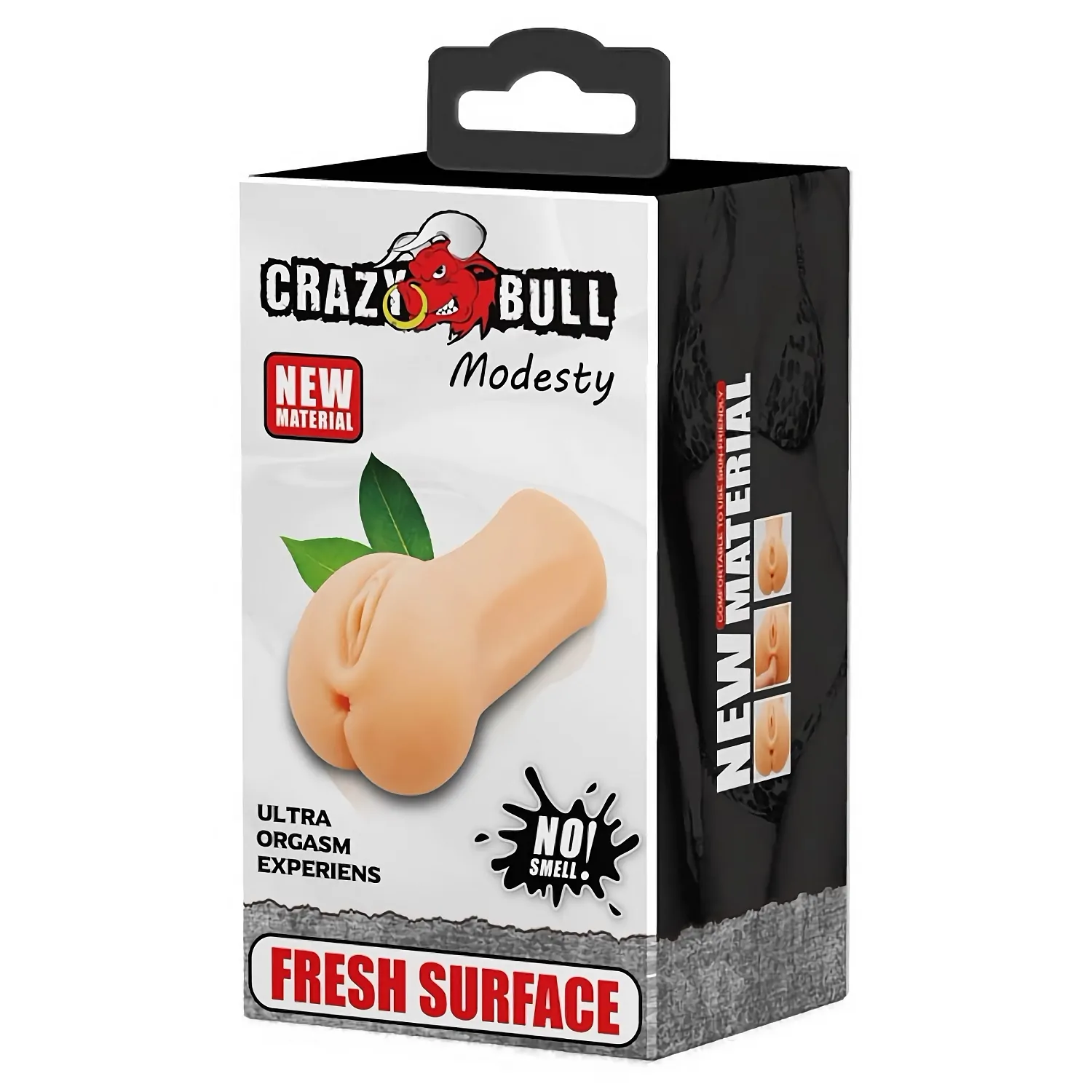 Crazy Bull Modesty este un masturbator realistic confecționată din TPE, un material plăcut la atingere ce seamănă extrem bine cu dermă umană. Acesta are 14.6 cm mărime și 8 cm în diametru, suficient pentru a se potrivi pe penisul tău, să te satisfacă în totalitate.