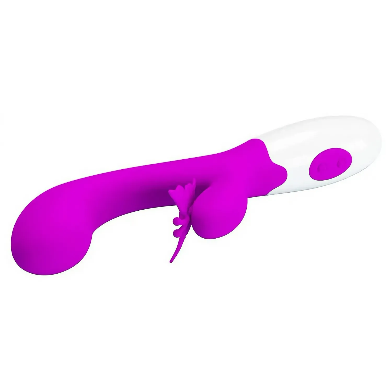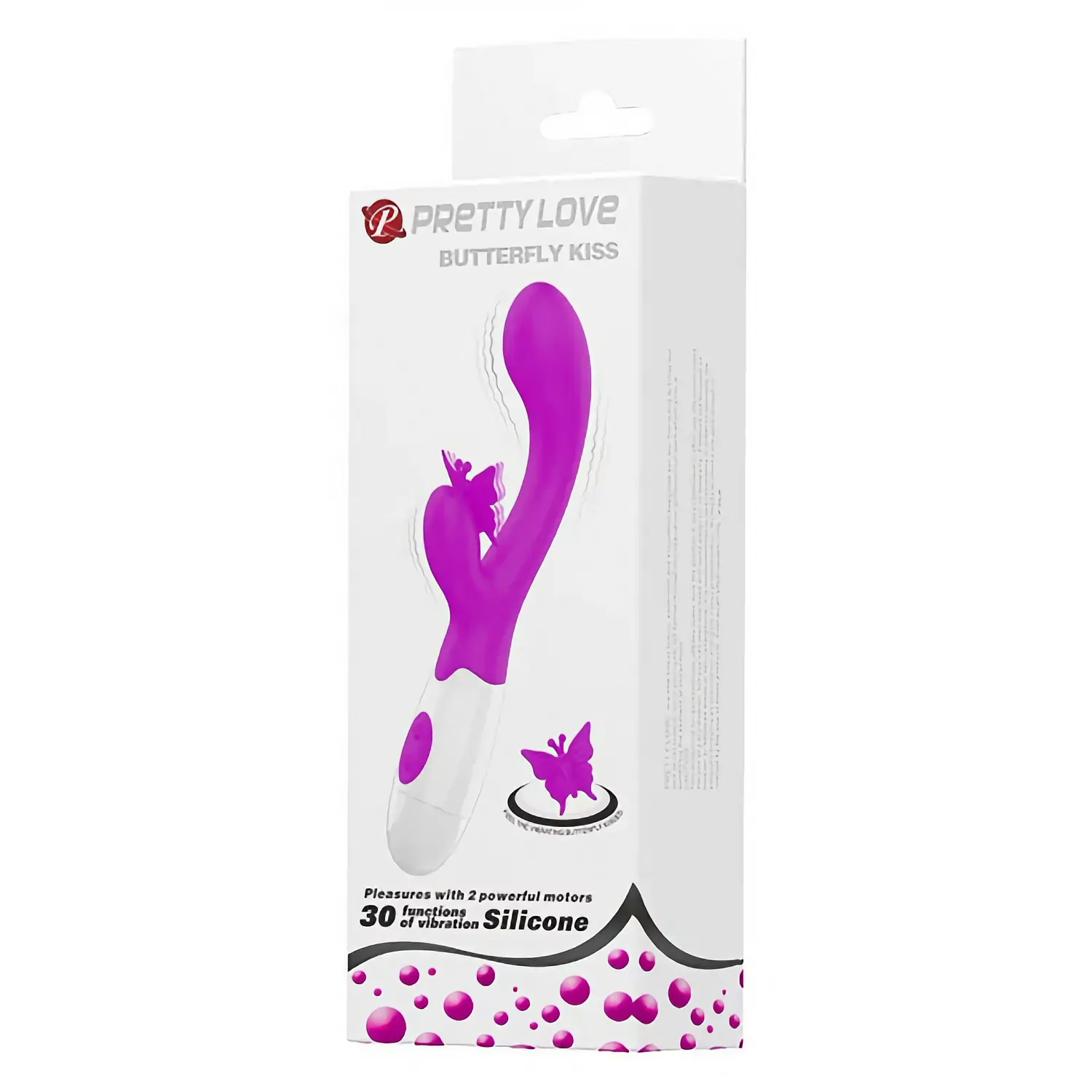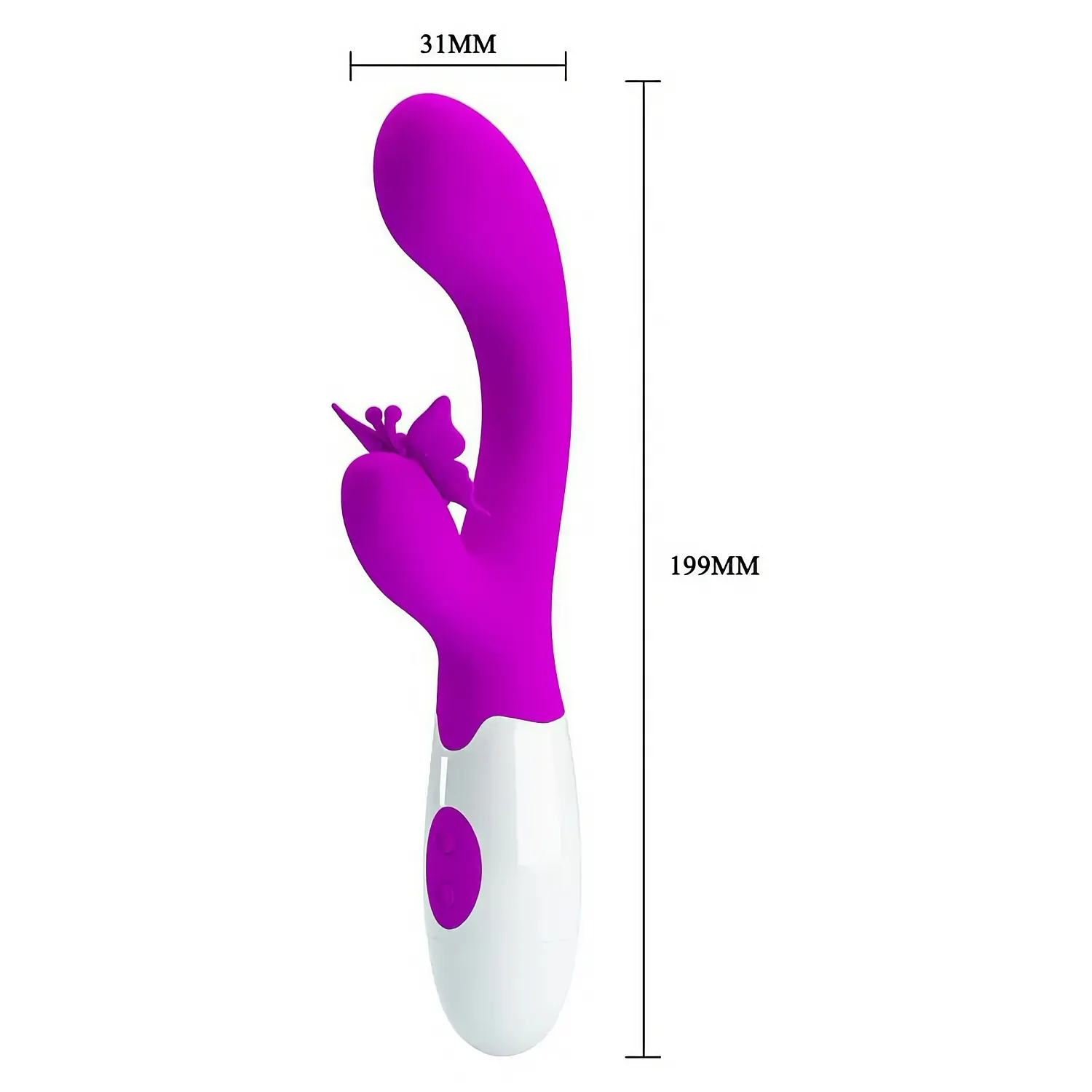 Descoperiți Butterfly Kiss, un vibrator cu bun gust și intens, făcut pentru a dărui o stârnire profundă și plăcută. Acest mecanism inovator se distinge printr-un stimulator clitoridian în înfățișare de fluture, care dansează cu grație, aducând o senzație unică de confort și satisfacție. Forma sa bine definită este gândită pentru a crea o senzație plină, punând la dispoziție un masaj intens asupra punctelor sensibile.