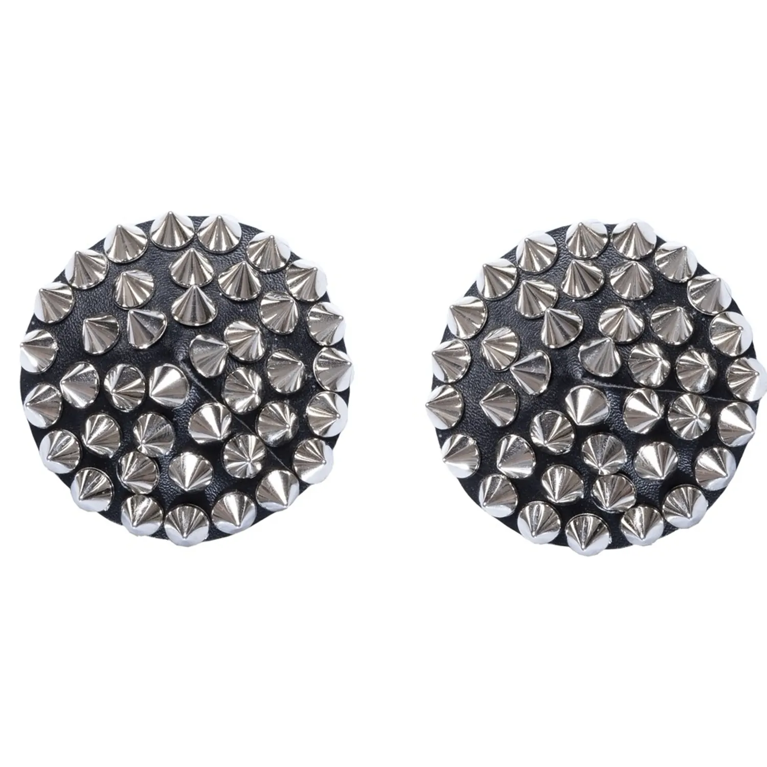 Stickeri rotunzi pentru mamelon de la Bad Kitty sunt confecționați din imitație de tegument neagră elegantă, împodobiți cu decorațiuni în variantă de țepi. Aceste accesorii sunt ușor de fixat și pot fi reutilizate, cu condiția să se reaplice folia protectoare înainte de depozitare. Fiecare sticker măsoară 7 cm și cântărește 18 g, fiind realizat din EVA, ABS, metal și adeziv prietenos cu pielea.