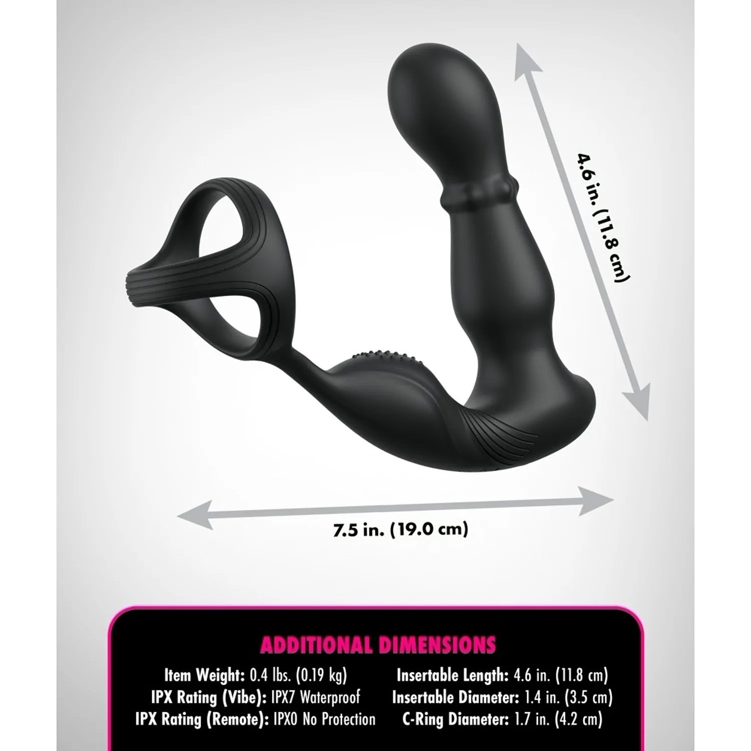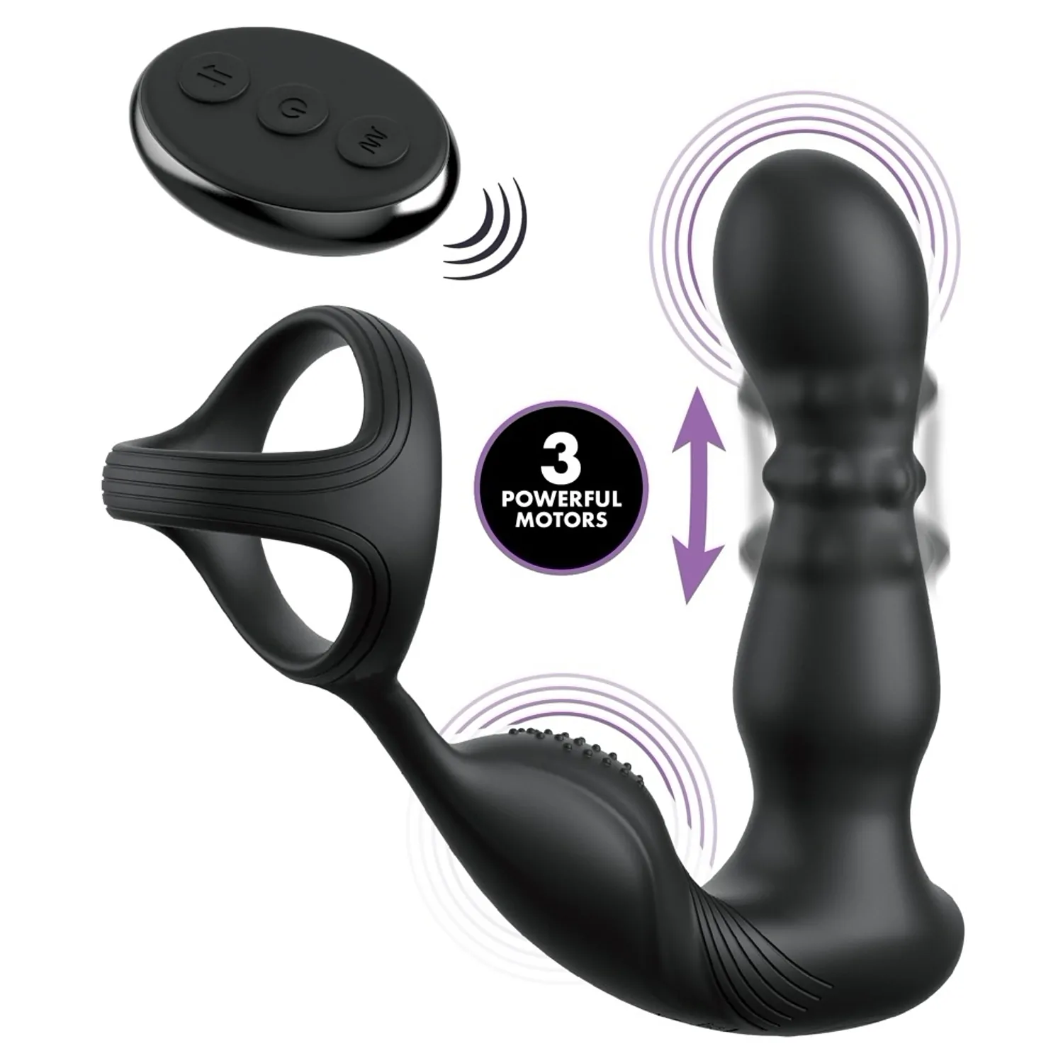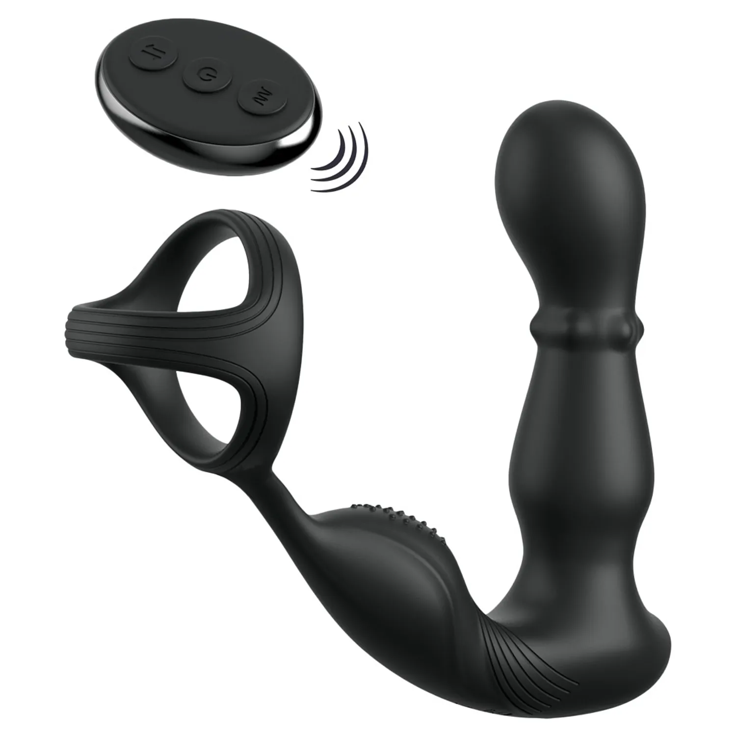Vibrator anal reîncărcabil cu masaj prin perle și stimulator perineal, 10 funcții (3 viteze + 7 moduri), inel extensibil de susținere, telecomandă și blocare pentru transport. Rezistent la apă, silențios, silicon premium.