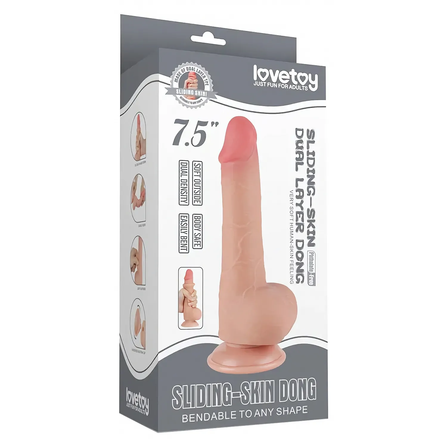 Dildo LoveToy 19.5 cm din TPE dual-densitate, piele mobilă pentru senzație naturală. Cupă de aspirație puternică, elastic și ușor de modelat. Utilizați material lubrifiere pe bază de apă. Sigur, discret.
