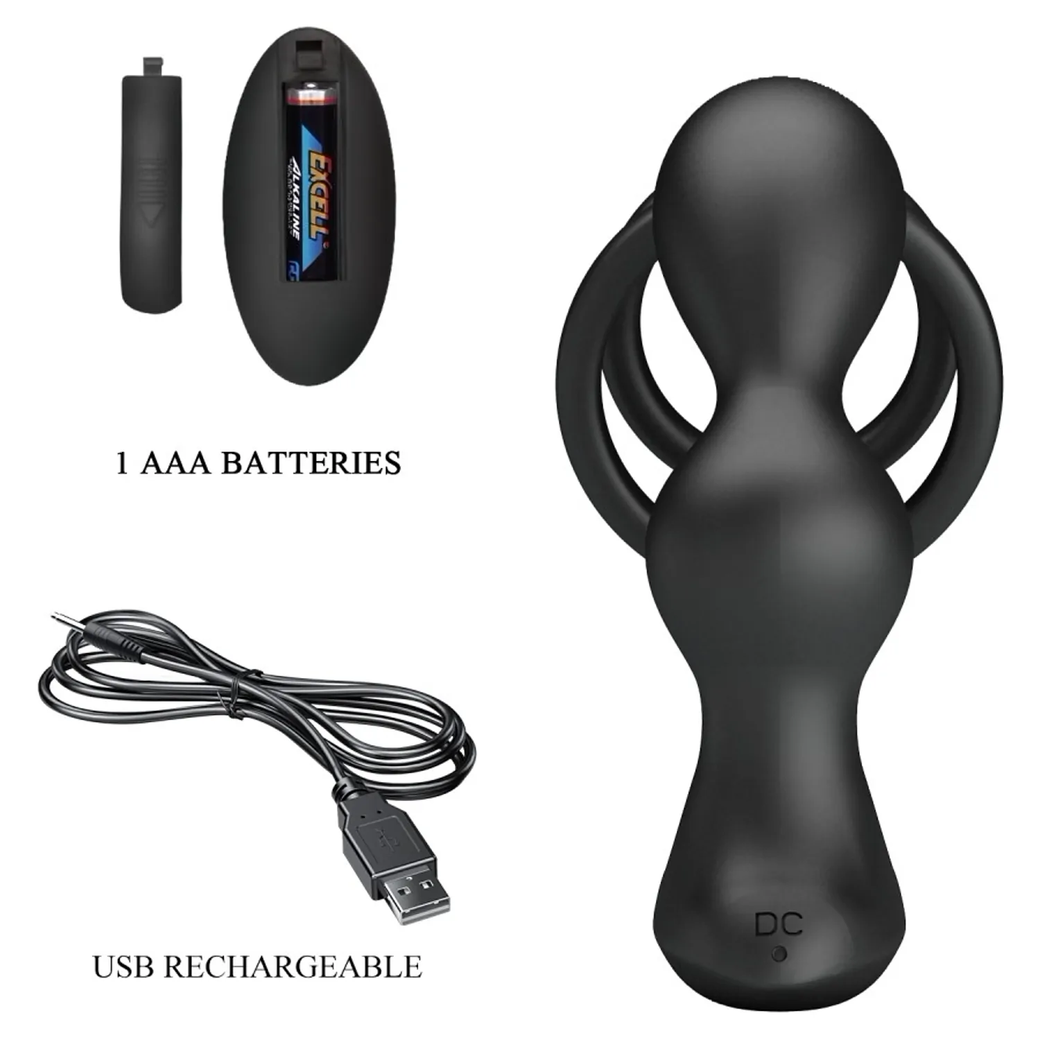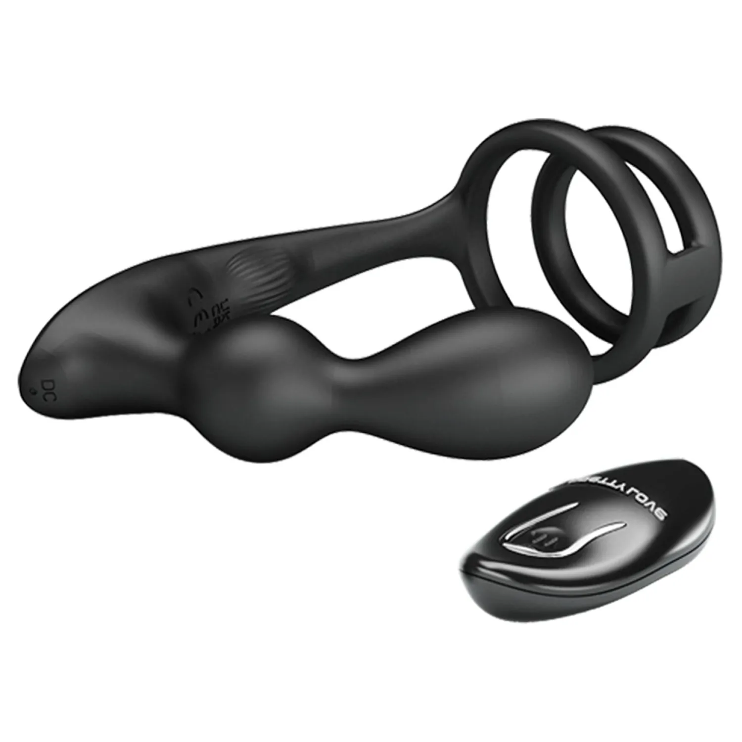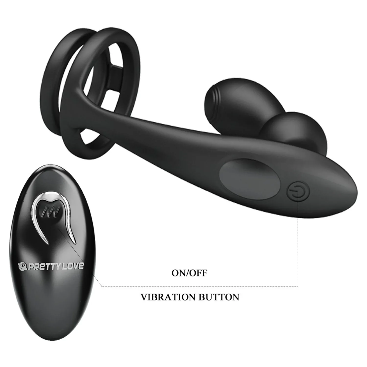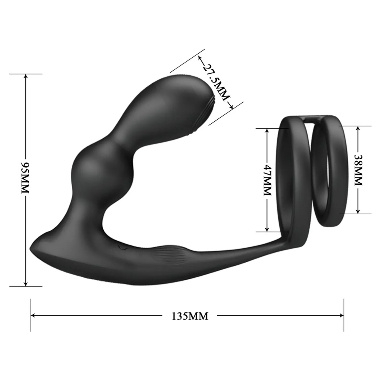Inel combinat cu aparat vibrator Pretty Love Marshall, proiectat pentru susținere stabilă și stimulare discretă. Designul inteligent asigură fixaj fermă a inelelor, în timp ce dispozitivul inserabil integrat conferă stimulare anală controlată.