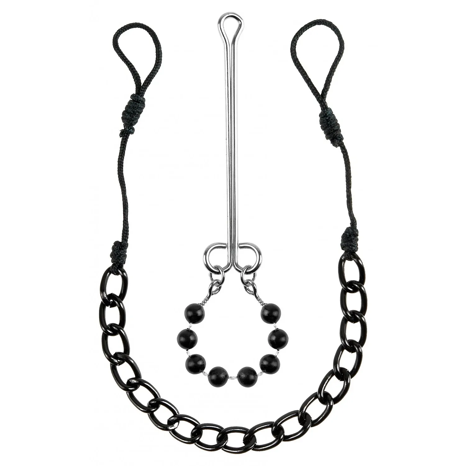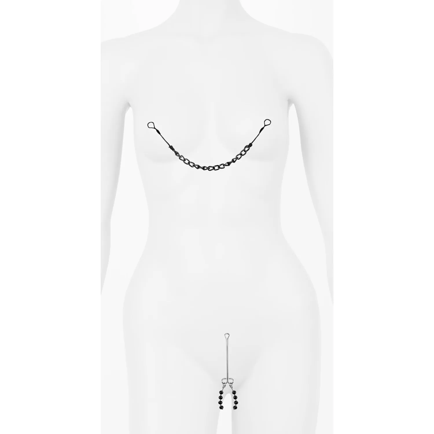 Încântă-te cu lanțul ușor și elastic care se înfășoară delicat în jurul sfârcurilor, punând la dispoziție o stârnire plină de balansuri și mărgeluțe ce înconjoară zona sensibilă. Jucăria noastră este perfectă pentru cei ce doresc să experimenteze delectare în diverse moduri, pentru că nodurile reglabile încuviințează reglarea intensității dorite. Descoperă fiorul dulce al stimulării sfârcurilor și a zonei intime cu acest Set Bijuterii pentru Sfârcuri și Zona Sensibilă Fetish Fantasy!