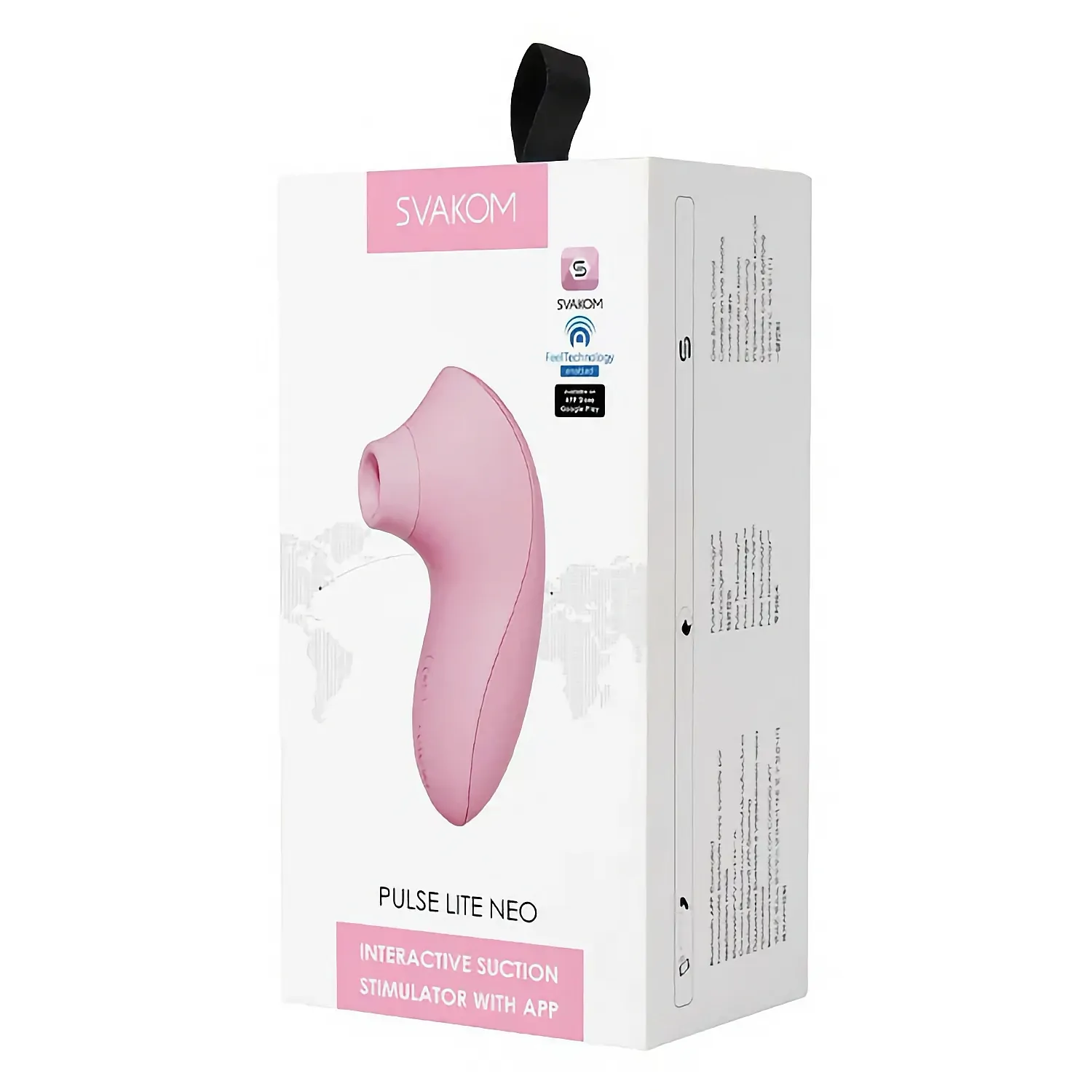 Pulse Lite Neo Pink de la Svakom — stimulator cu automatizare Pulse, 5 moduri de aspirație cu 5 niveluri de intensitate, cu acumulator 300 mAh, material silicon + ABS, durabil la apă, control prin aplicație. Stil compact, discret și sigur pentru utilizare privată.
