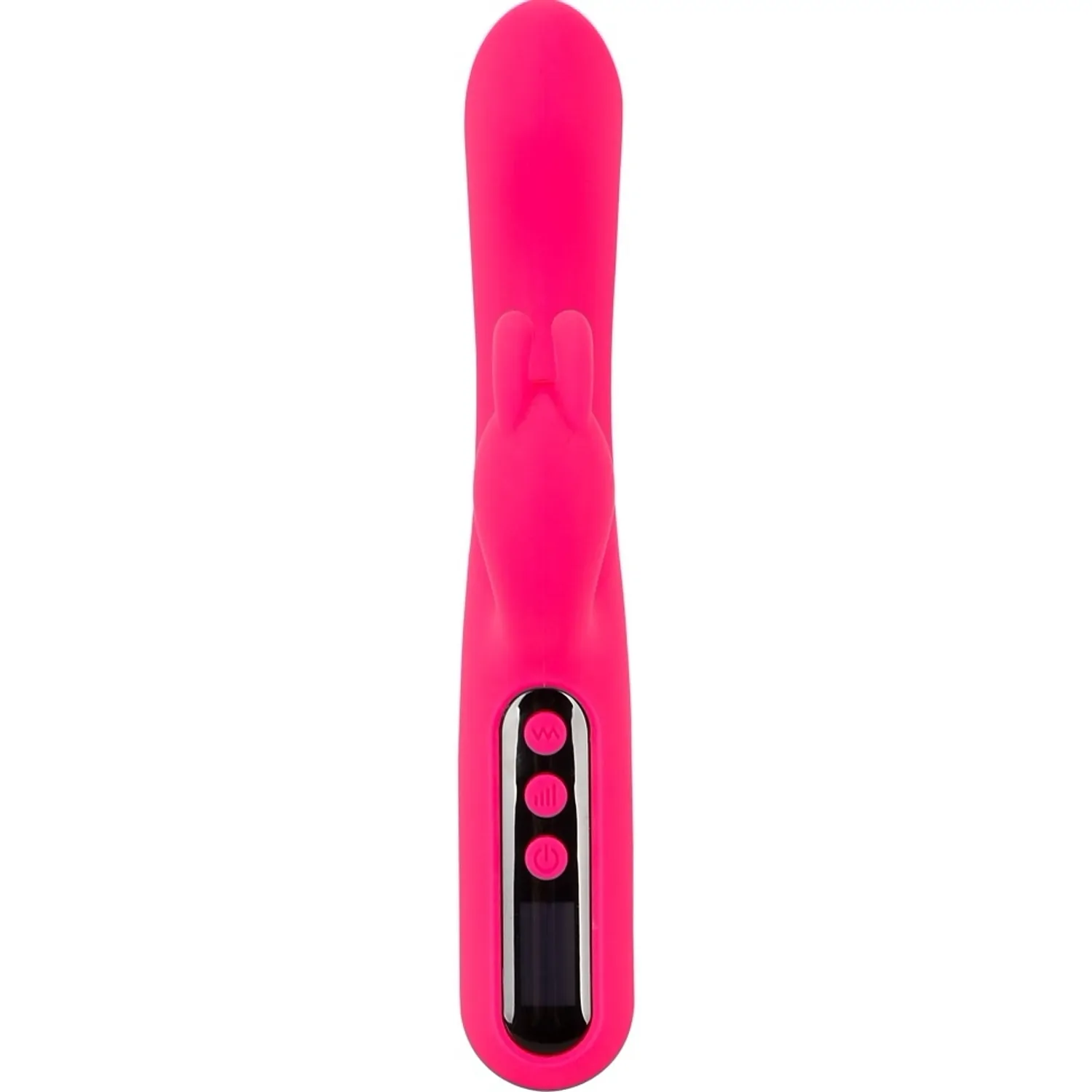 Vibrator iepure Pink Sunset de la You2Toys: control digital cu display, 10 chipuri de vibrație, 4 intensități, 2 motoare, reîncărcabil USB și viguros la apă. Stil ergonomic din silicon Soft Touch pentru inserție confortabilă.