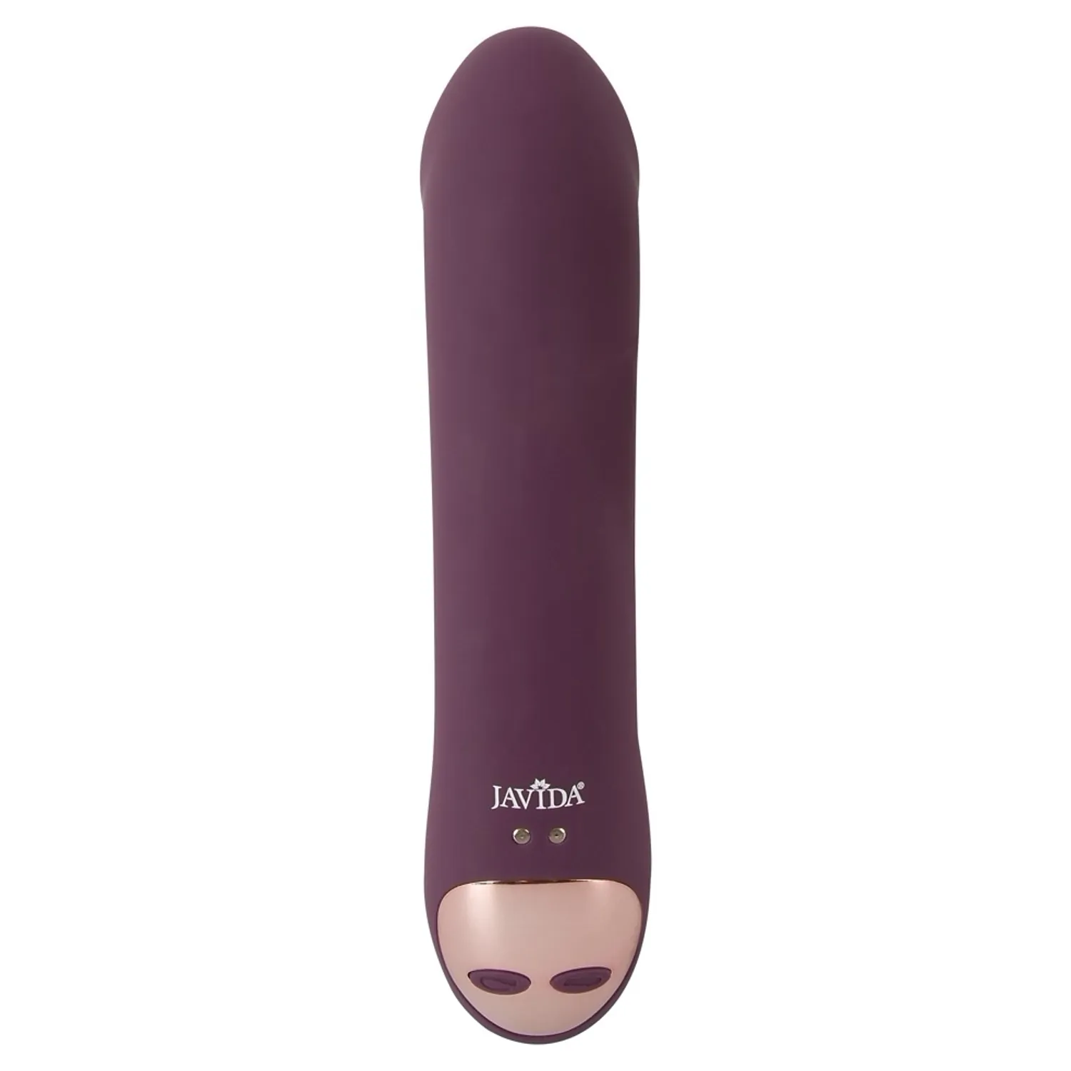 Vibrator JAVIDA elastic cu vârf oscilant și stimulator clitoridian. Oferă 10 moduri în ax și 10 feluri în stimulator, control separat, cu acumulator (cablu USB magnetic). Materiale: silicon, PU, ABS; design discret și ergonomic.