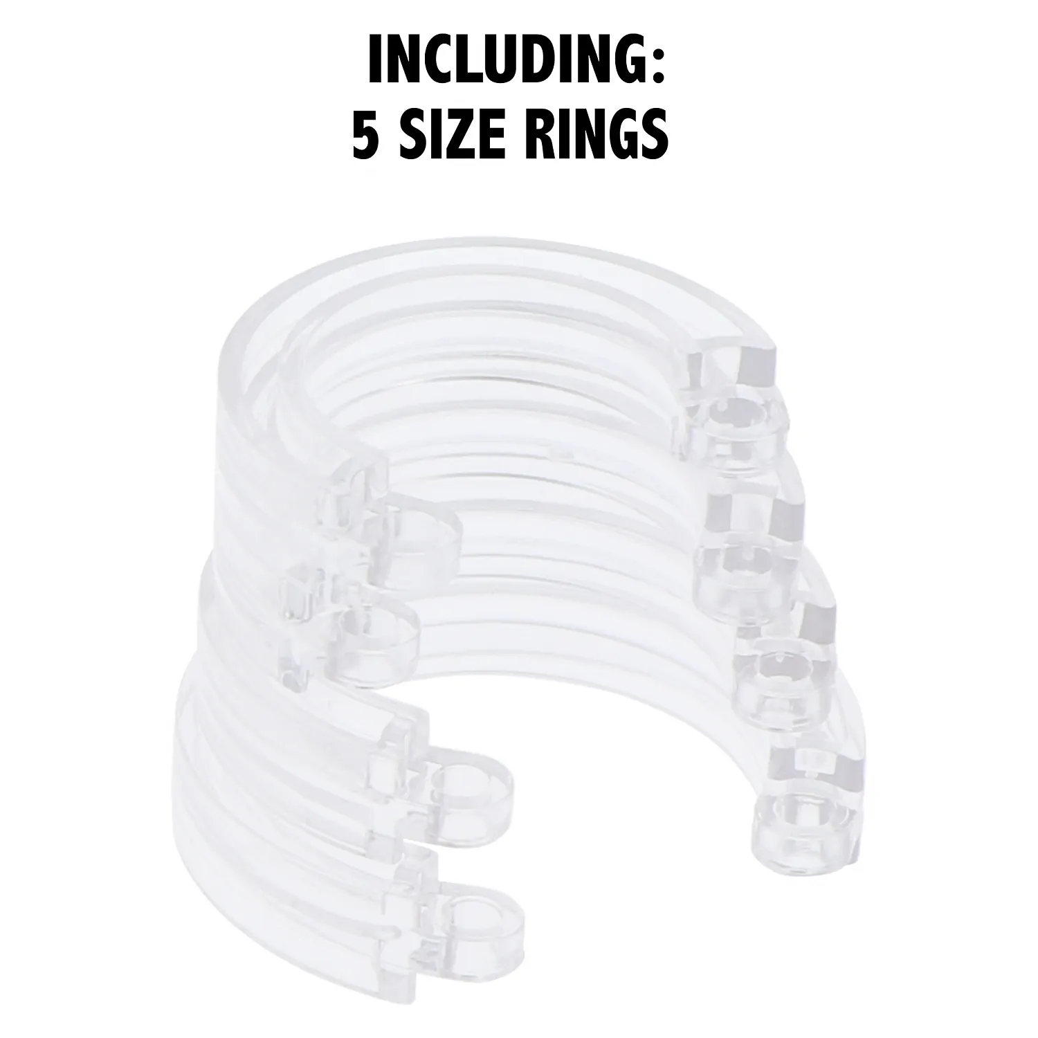 Căptușeala din silicon conductor permite transmiterea impulsurilor în mod controlat, iar kitul de inele interschimbabile asigură ajustarea fină pentru potrivire personalizată. Construcția are la bază ergonomia, redusă la elementele esențiale pentru confort prelungit.
