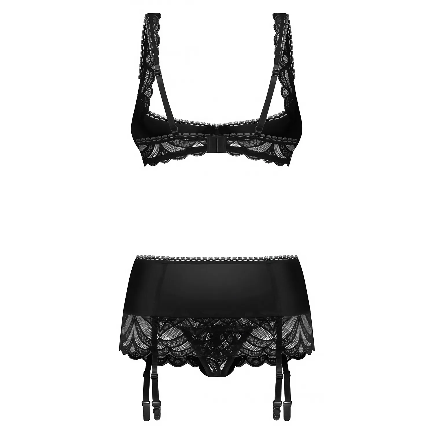 Set Obsessive Lecille Negru este o costum de lenjerie încântătoare și foarte de fascinantă, desenată și fabricată de valorosul brand de lenjerie Obsessive din Polonia.