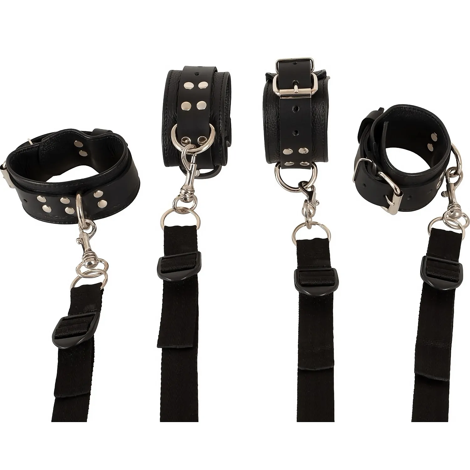 Montare și utilizare: introduceți curelele sub saltea, conectați cătușele la cârlige și reglați cataramele conform confortului. Uzați întotdeauna cu consimțământ mutual și respectați limitele de siguranță ale partenerului.