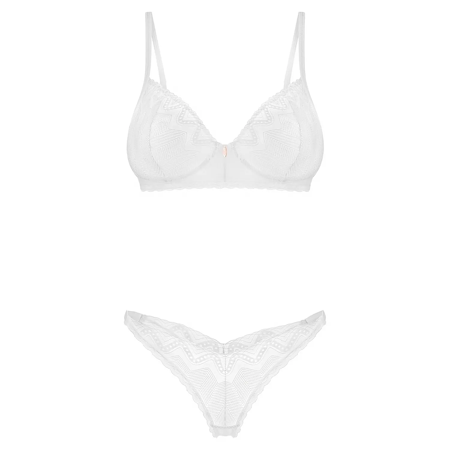 Set Obsessive Alissium Alb este o achiziție de lenjerie uimitoare și grozav de fascinantă, reprezentată grafic și realizată de însemnatul brand de lenjerie Obsessive din Polonia.