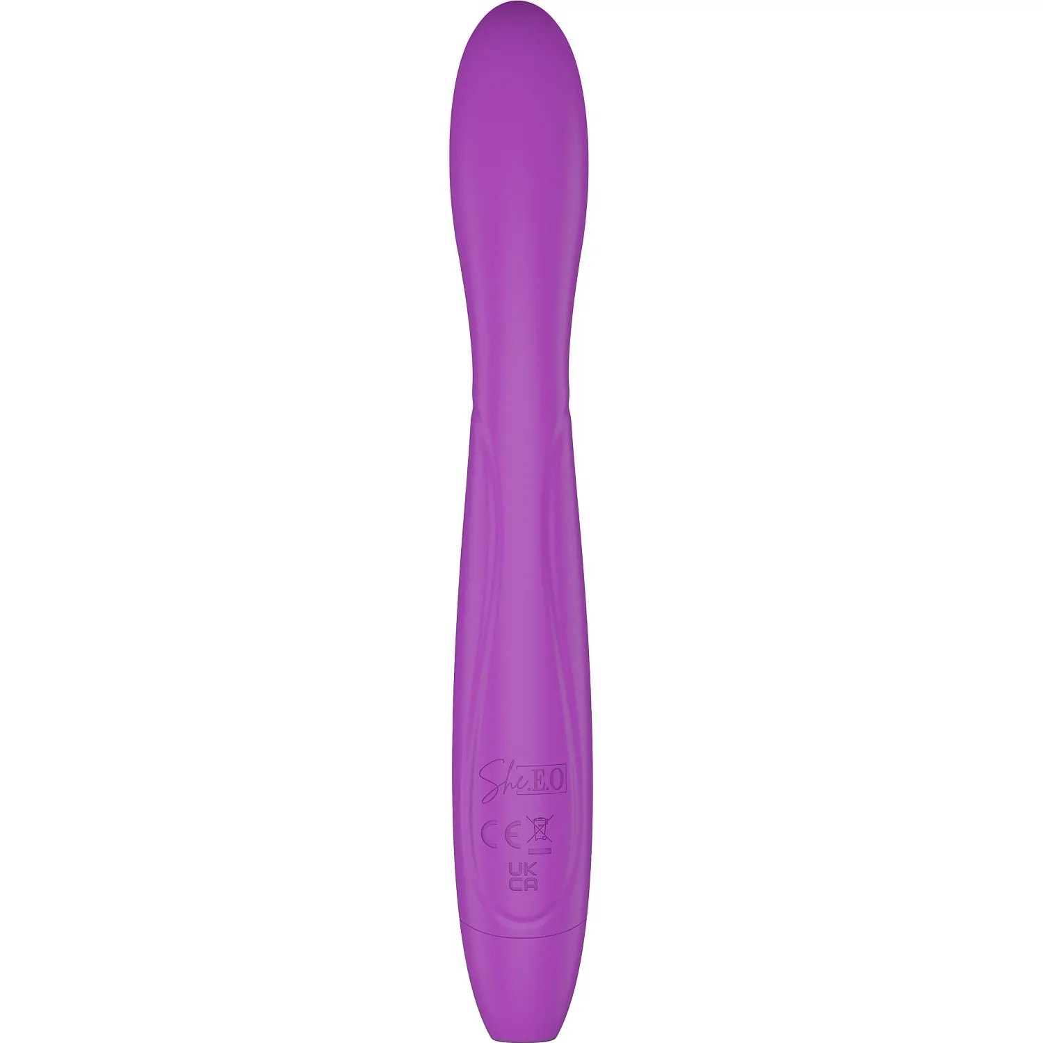 Vibrator She EO cu cap percutant pentru stimulare a punctului G și tija vibratoare. 10 feluri combinate de vibrație și tapping, silicon sigur pentru corp, cu acumulator și viguros IPX7. Lungime inserabilă 16 cm, calibru 2.5 cm.