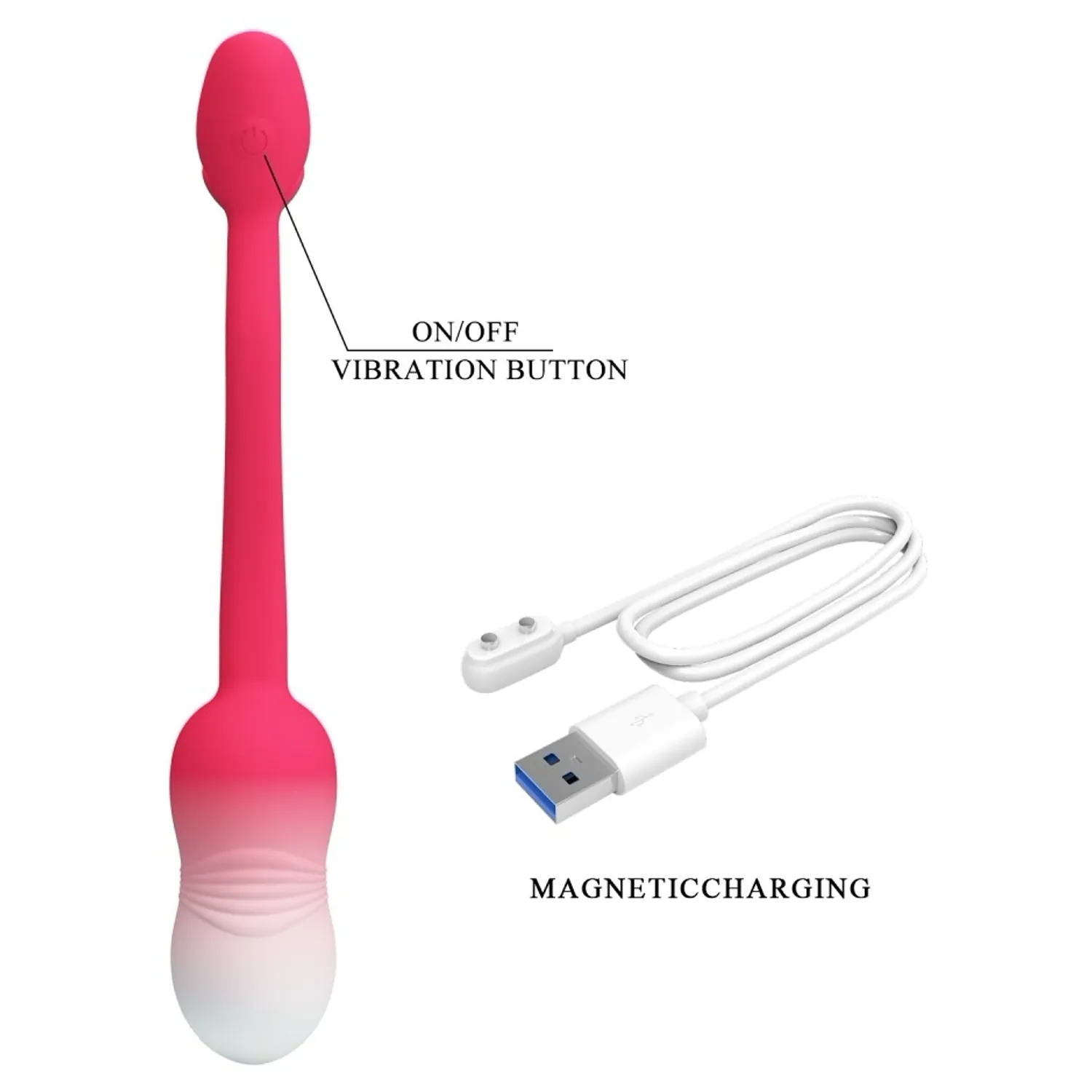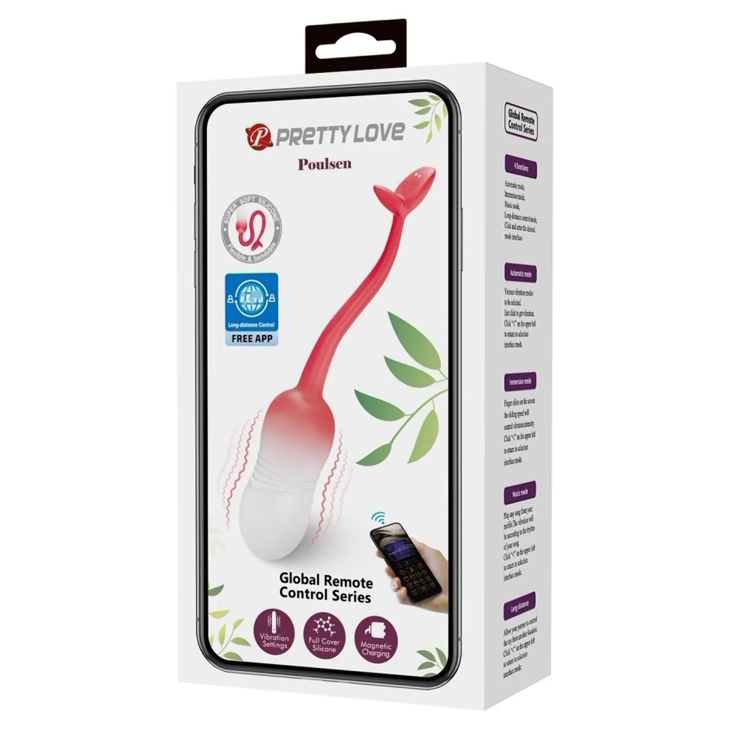 Vibrator egg Poulsen din silicon, impermeabil, control prin aplicație, 12 moduri și încărcare magnetică. Spălare ușoară; prescris material lubrifiere pe bază de apă.