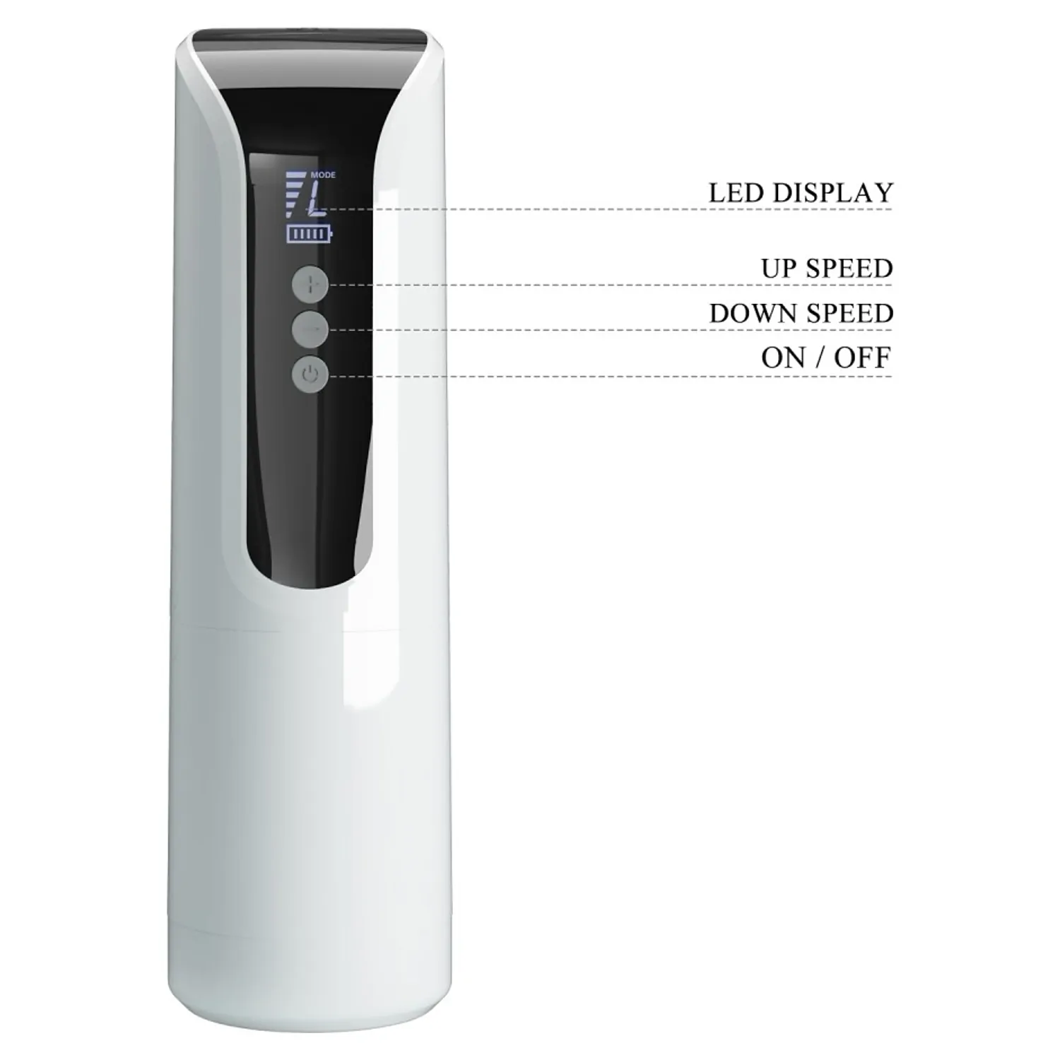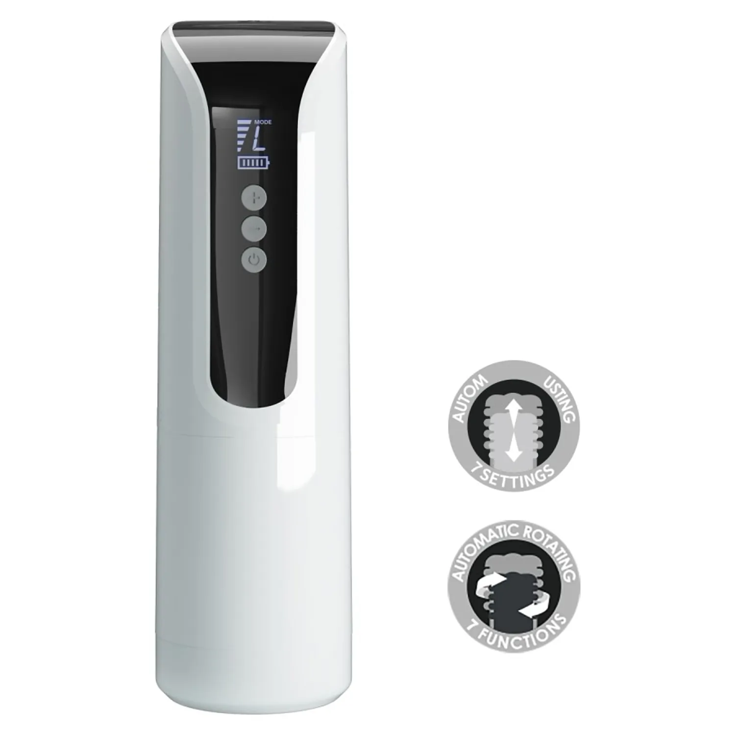Beneficii și atribute: - 7 setări de împingere pentru variație - 7 moduri de circulație pentru stârnire combinată - 5 trepte de viteză pentru control fin - Ecran LED care indică modul, viteza și nivelul bateriei - Reîncărcabil, excluzând baterii de unică folosință - Material: TPR, texturat pentru trăiri realiste - Nuanțe discrete: alb, transparent