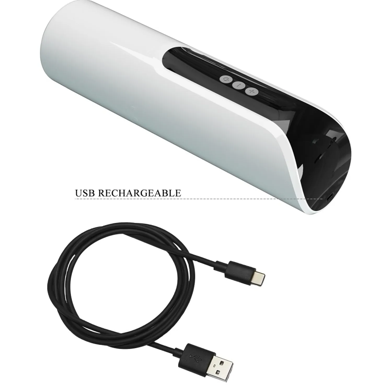Produsul este reîncărcabil, cu un design compact și colorații discrete (alb, transparent). Materialul TPR este extensibil și plăcut la atingere, plămădit pentru utilizare repetată.