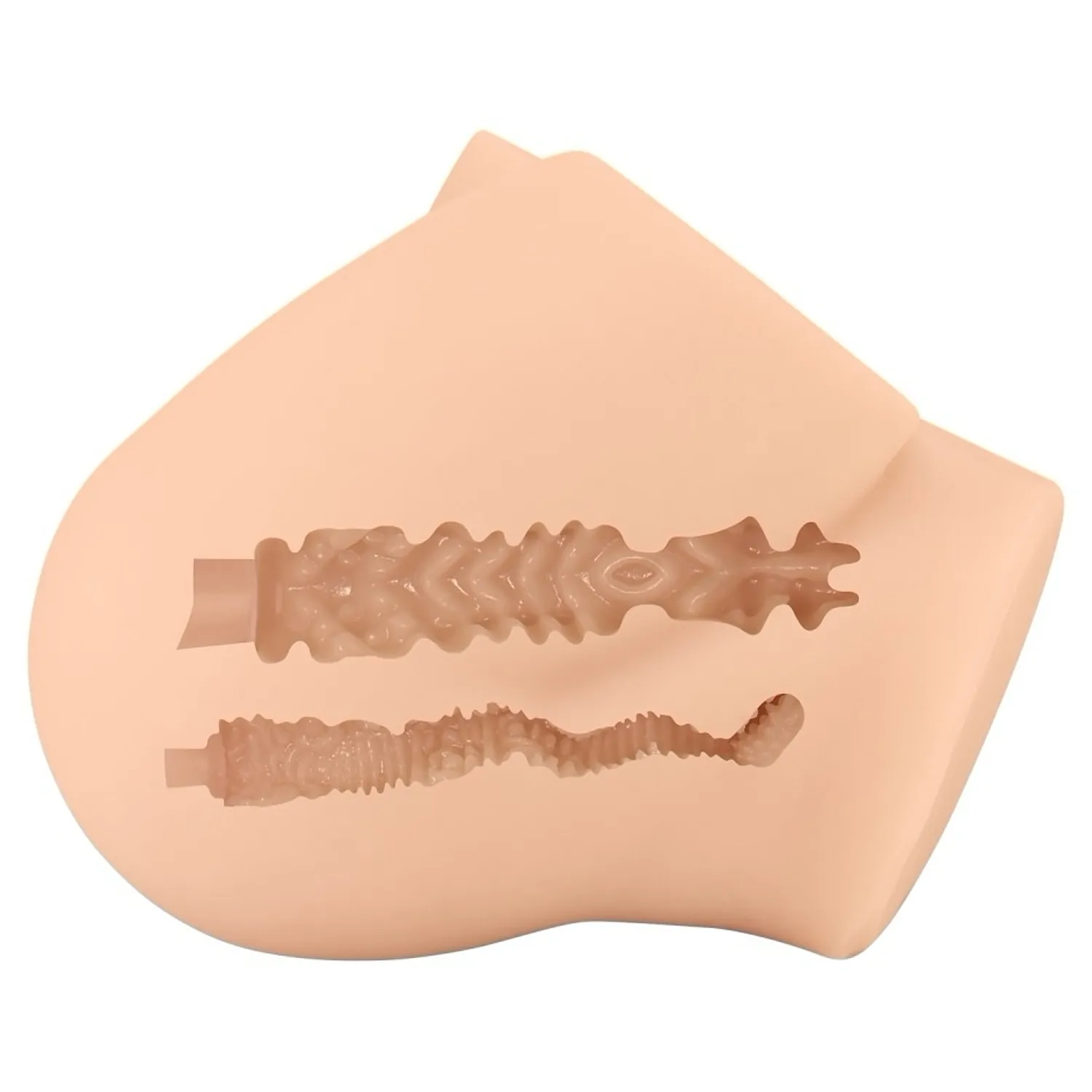 Beneficii și atribute: - Dublu orificiu cu texturi diferite pentru varietate tactilă - Material extra elastic pentru adaptare și confort - Vene și proeminențe interne pentru stimulare crescută - Design ergonomic pentru manevrare facilă - Ușor de purificat și întreținut - Discret și durabil