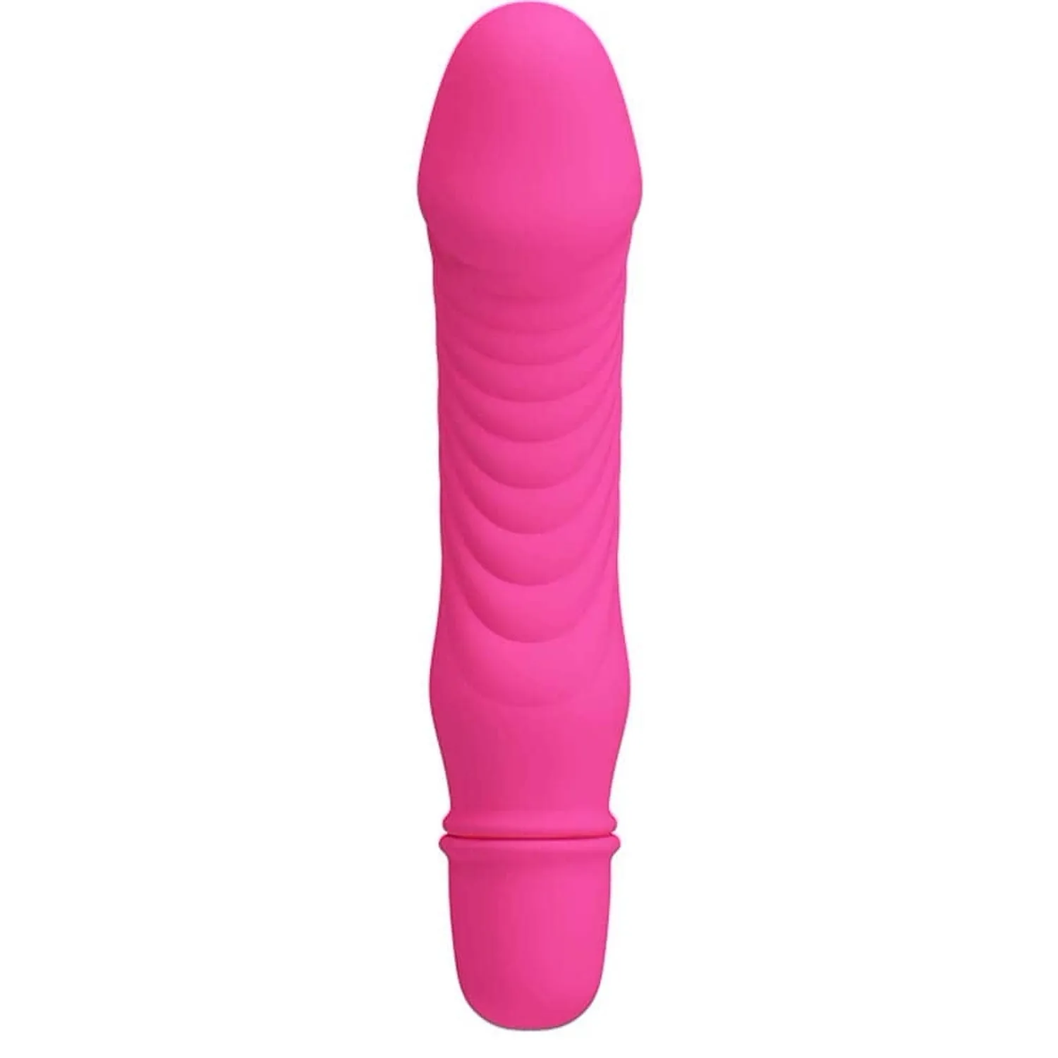 Mini vibrator Pretty Love Stev Pink din silicon, cu cap orientat pentru stimulare precisă a punctului G. 10 funcții de vibrație, viguros la apă și reîncărcabil. Design ergonomic, ușor de curățat. Recomandat lubrifianți pe bază de apă.