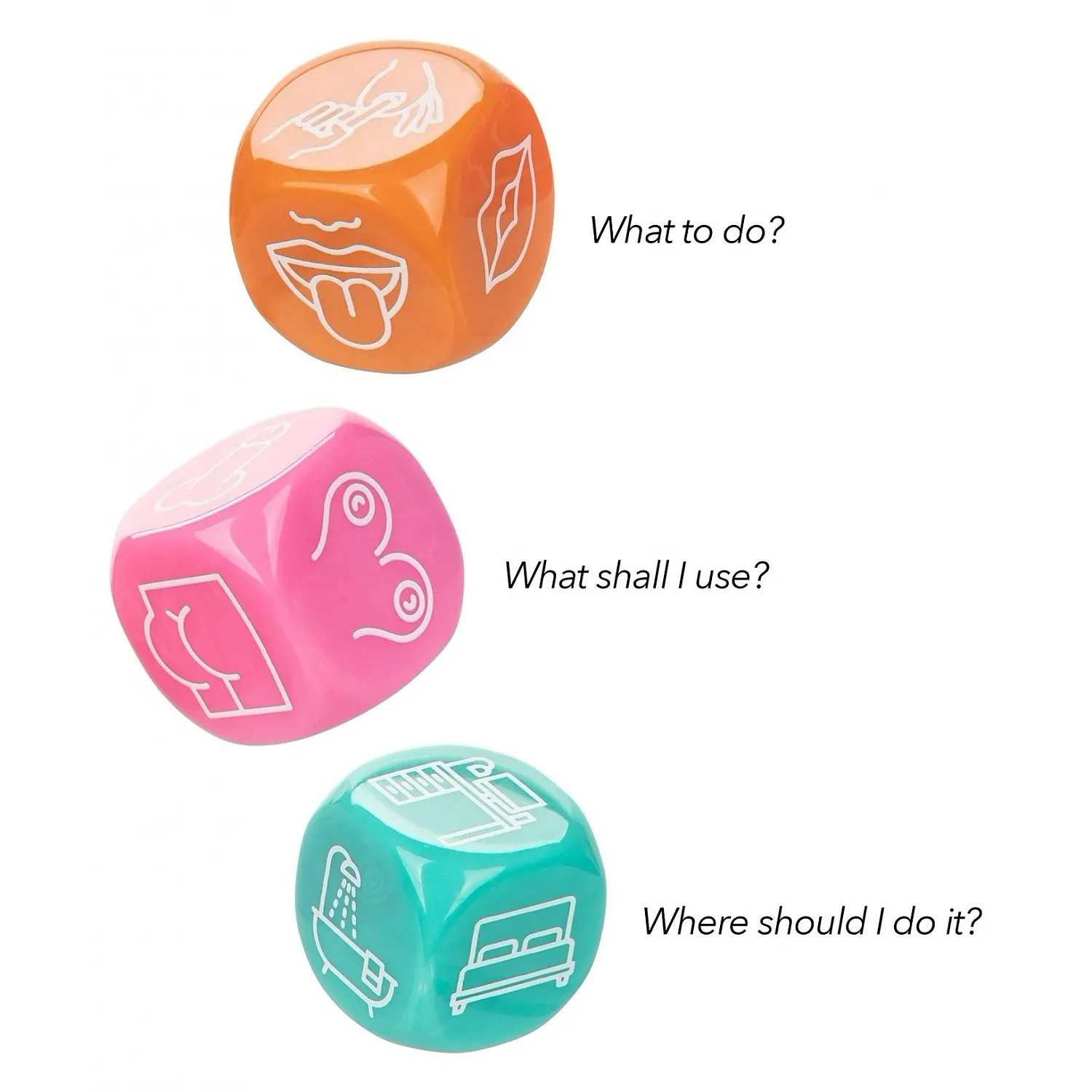Cum se folosește: aruncați cele 3 zaruri și urmați indicațiile afișate. Articol destinat exclusiv adulților; folosiți întotdeauna cu respect și consimțământ.