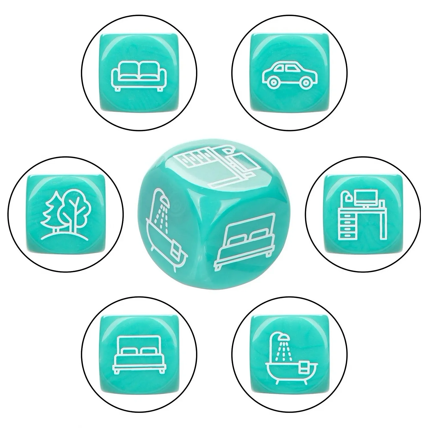 Beneficii și atribute: - Set complet: 3 zaruri pentru parte, acțiune și loc - Material durabil: acrilic, simplu de curățat - Compact și discret: grozav pentru depozitare pe noptieră sau în cutie cadou - Folosire facilă: reguli clare, rundă rapidă - Adecvat pentru cupluri care doresc varietate și clipe jucăușe