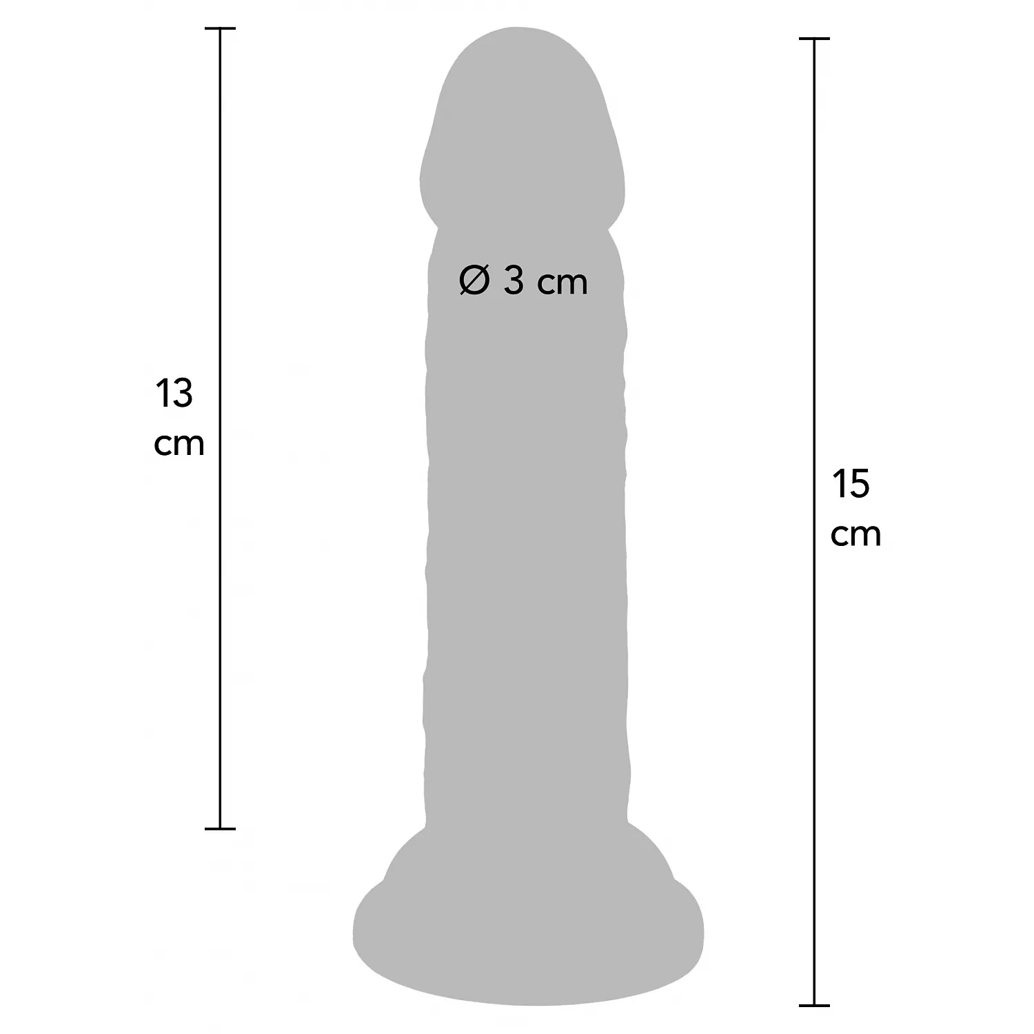 Baza cu ventuză robustă aduce fixare sigură pe suprafețe netede și îngăduie utilizare hands‑free. Mărimile compacte fac materialul finit ușor de manevrat și depozitat: lungime totală 15 cm, lungime inserabilă 13 cm și calibru de aproximativ 3 cm.