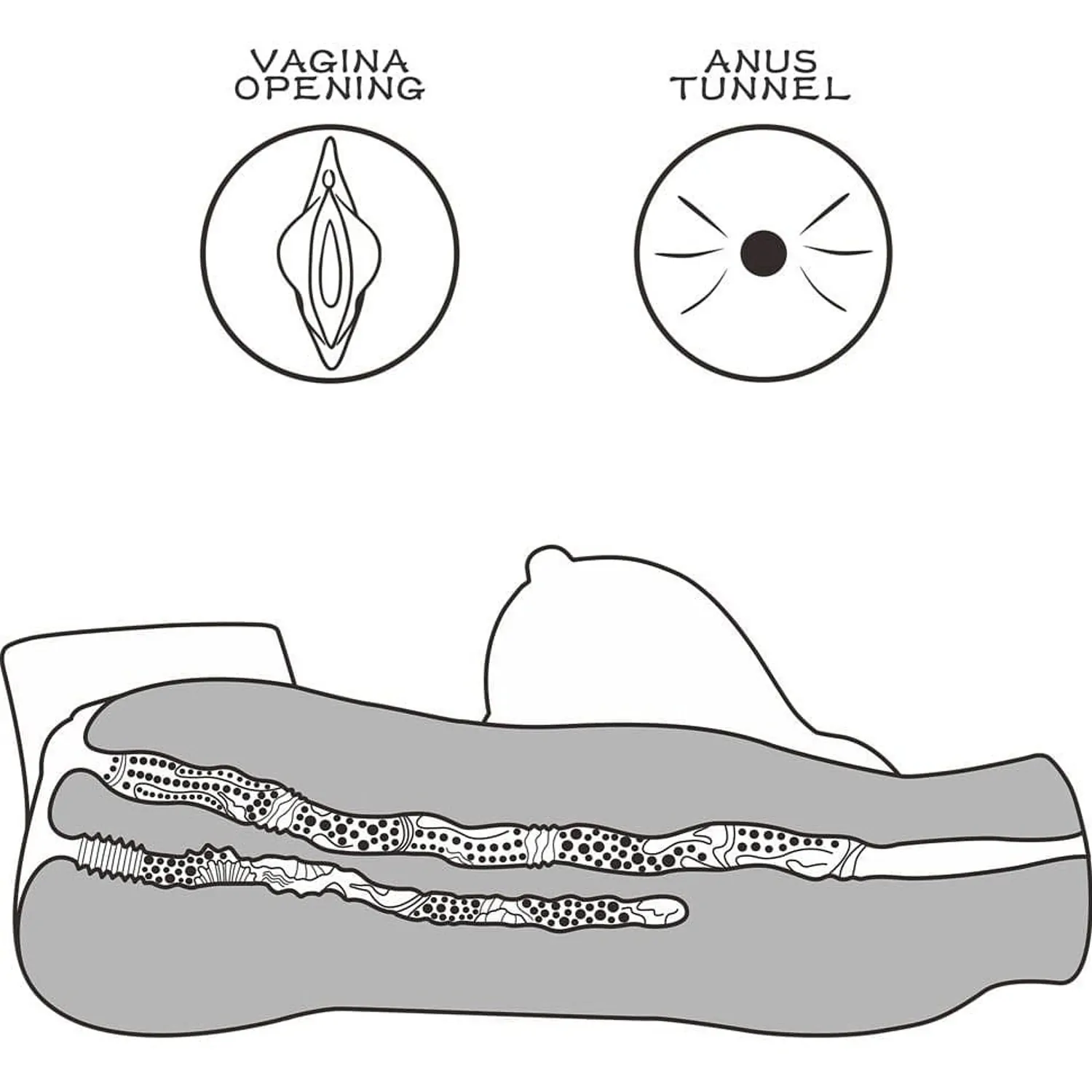 Beneficii și atribute: - Material TPE ultra-moale, non-toxic - Două canale interioare distincte pentru variație - Texturi interne (nodule și curbe) pentru stimulare progresivă - Design compact, ușor de poziționat și manevrat - ștergere simplă: clătire directă sub jet de apă - Greutate 1.6 kg pentru stabilitate în utilizare - Recomandare: lubrifiant pe bază de apă; elasticitatea sporește după câteva utilizări