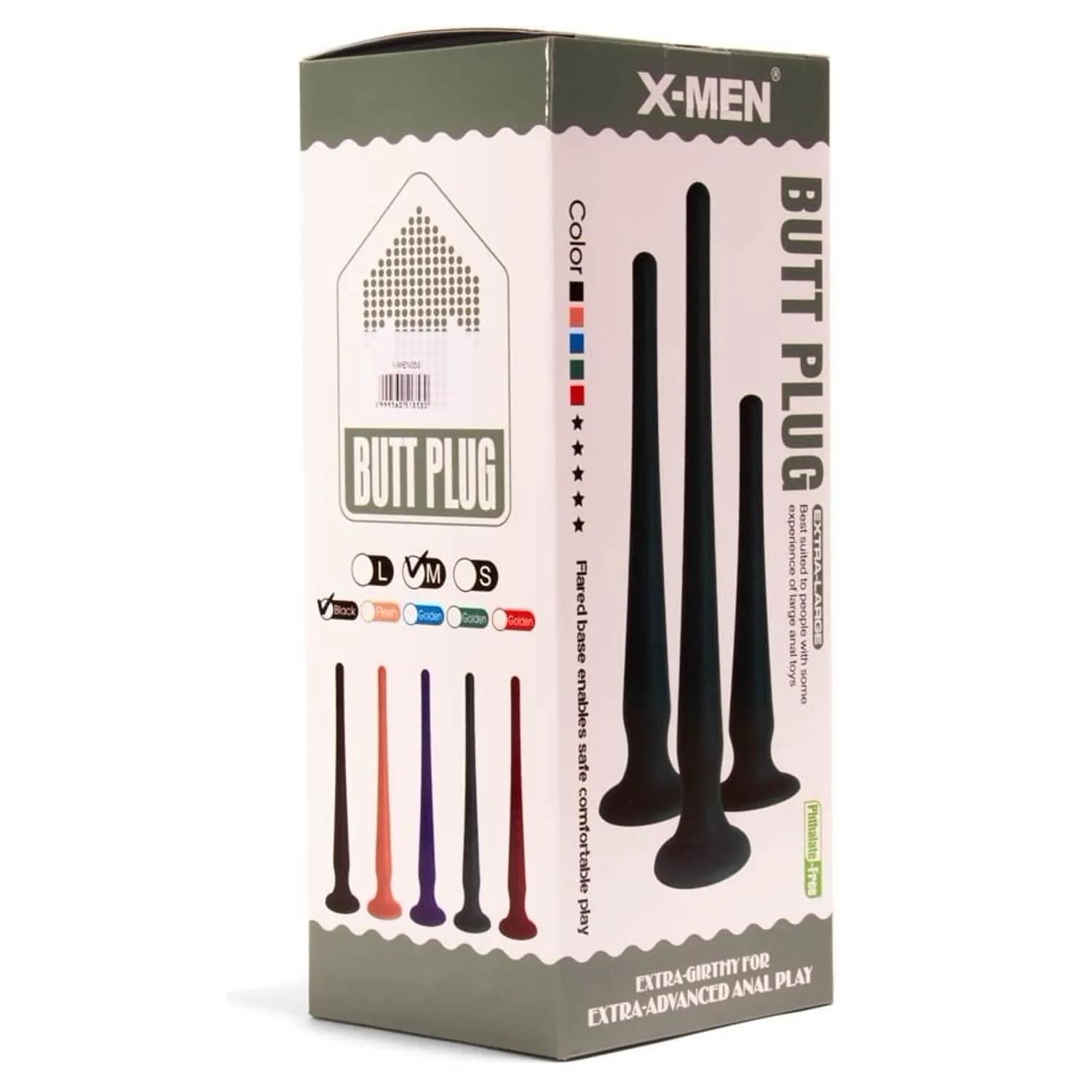 Dop anal X-Men, dimensiunea M, creat pentru introducere treptată și utilizare discretă. Materialul din silicon este elastic și cordial cu pielea, dând o senzație netedă la atingere și adaptare la corp.