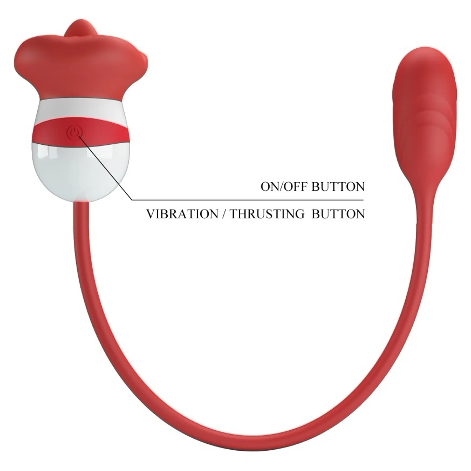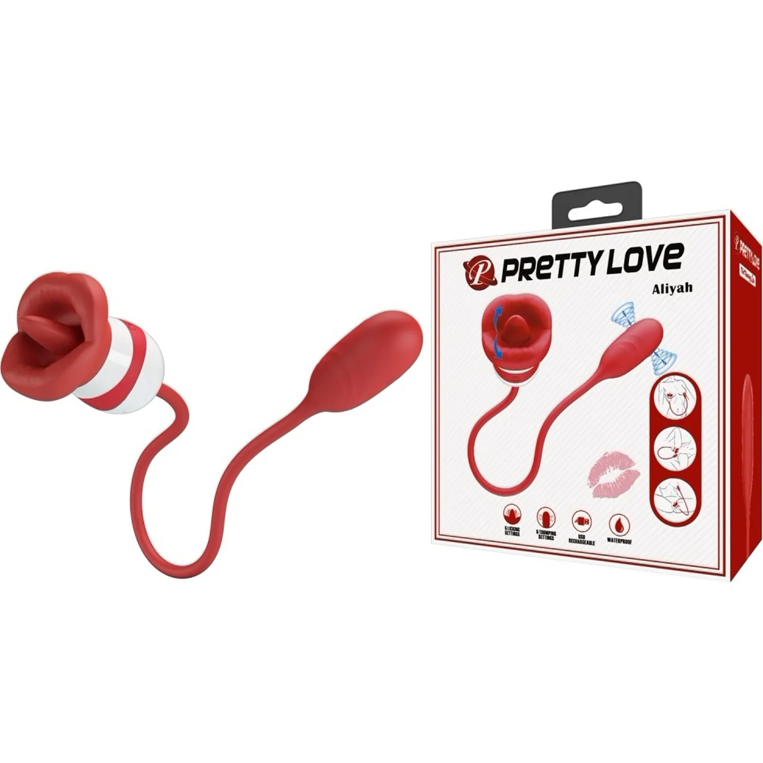 Pretty Love Aliyah combină două chipuri de stârnire într-un design compact inspirat din mișcarea buzelor. Un punct final imită lingearea delicată, iar celălalt oferă pulsații tari pentru o senzație complementară și intensă.