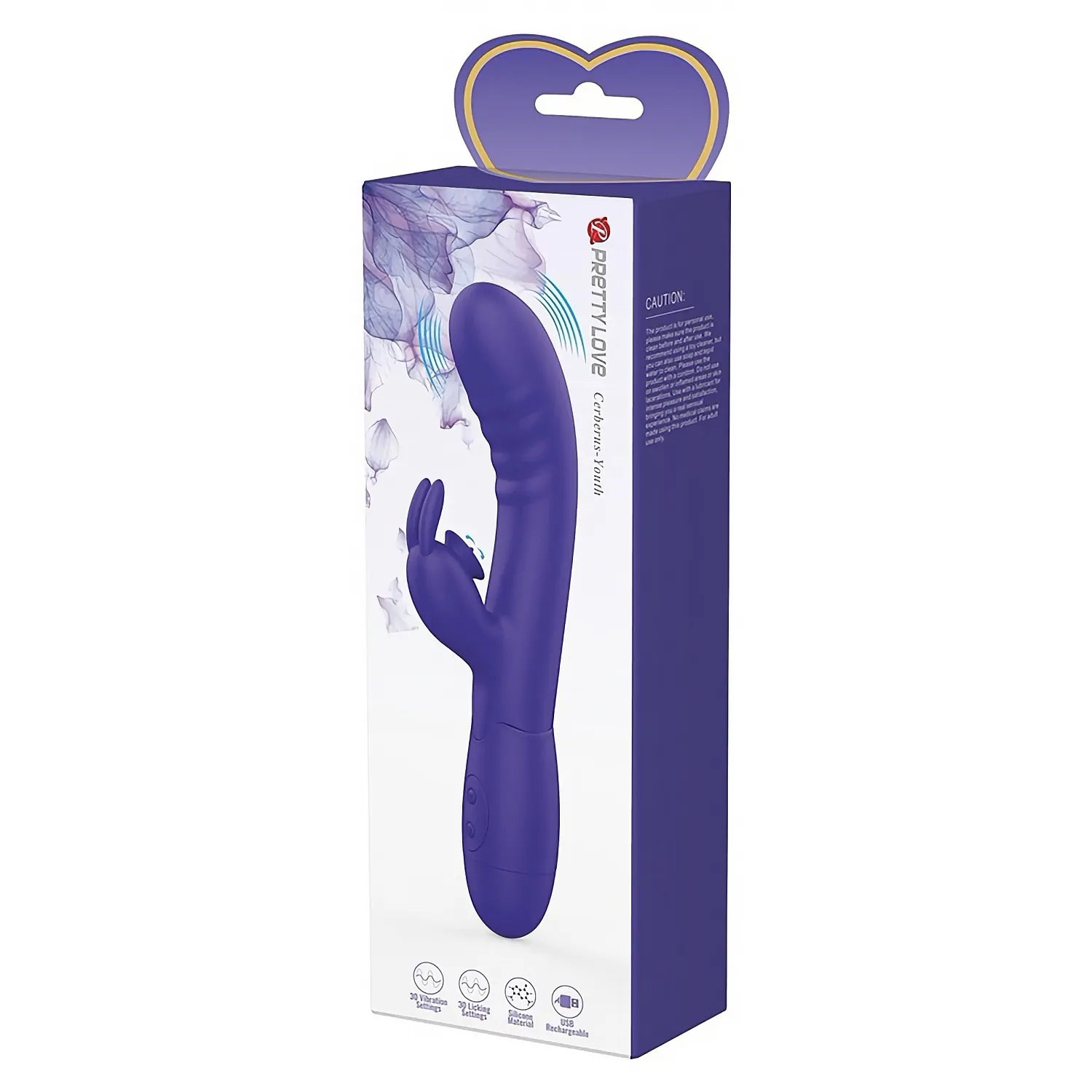 Pretty Love Cerberus Youth este un vibrator tip rabbit, conceput pentru stimulare multiplă și reglaje fine. Capul curbat țintește punctul G, iar brațul mic tip rabbit conferă contact direct și precis cu clitorisul. Dispune de 30 de programe de vibrație pentru a adapta forța după preferințe.