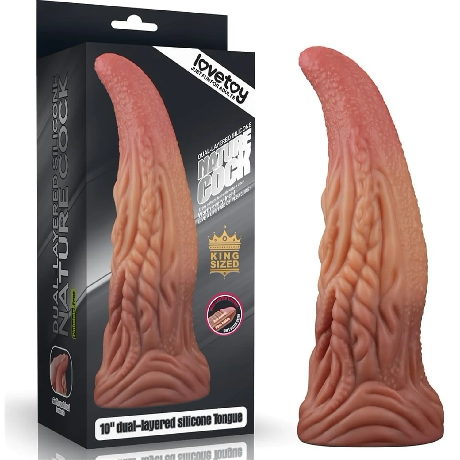 Beneficii și atribute concrete: - Material: silicon platinum dublu înveliș (exterior moale, miez ferm) - Texturi: nubbins și striuri pentru stimulare amplificată - Vârf conic pentru inserție ușoară - Bază lată cu ventuză pentru fixare hands-free - Hipoalergenic, non-poros, excluzând ftalați și fără latex - Ușor de curățat și întreținut
