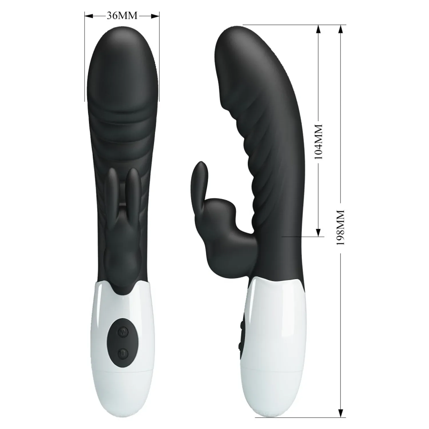 Pretty Love Naughty Bunny este un stimulator dublu, conceput pentru surescitarea punctului G și a clitorisului. Forma flexibilă se modelează ușor și menține contactul cu zona clitoridiană pentru o stârnire constantă.