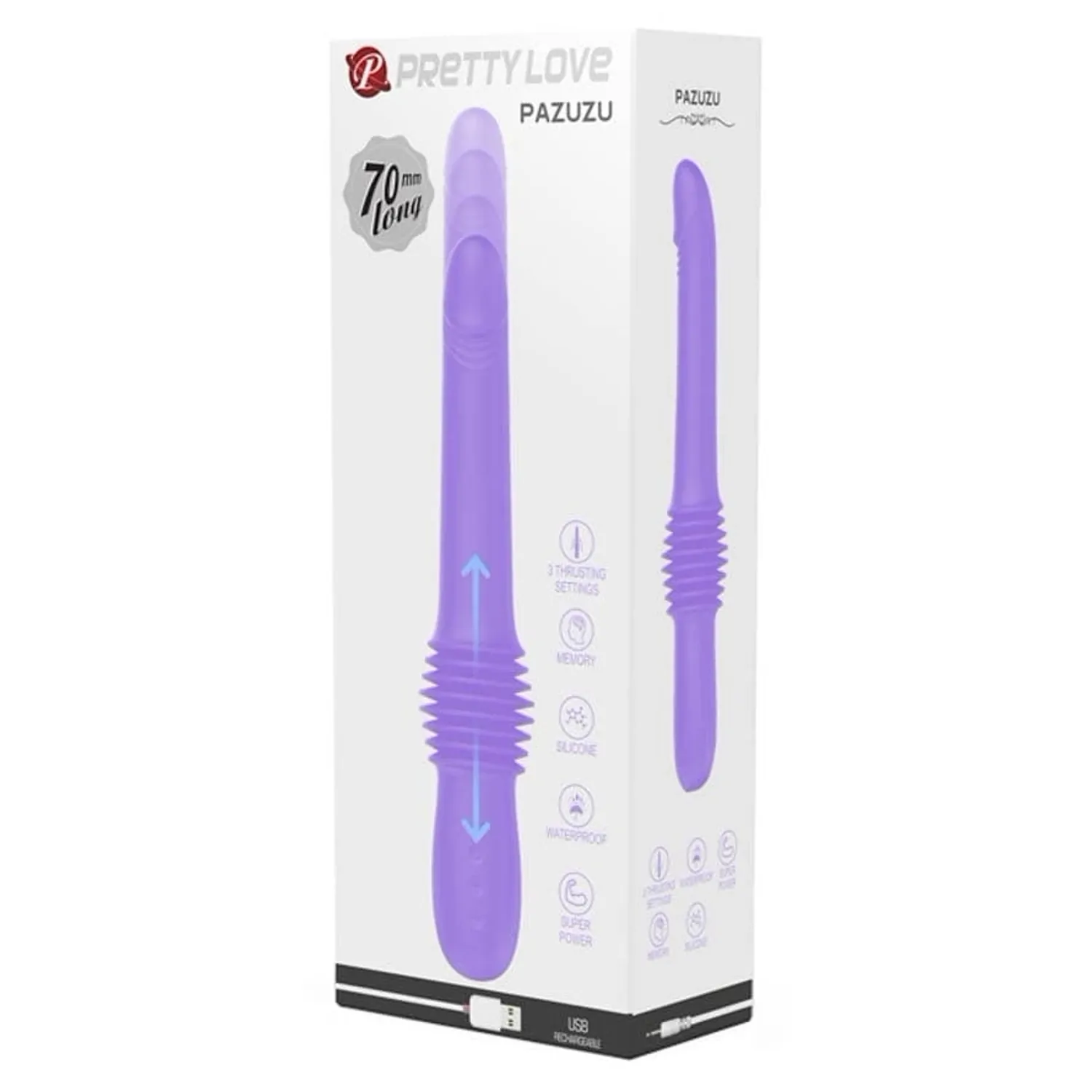 Pretty Love Pazuzu Purple este un vibrator conceput pentru control și manevrabilitate. Mecanismul de pistonare oferă o mișcare în față-înapoi cu extensie de până la 7 cm, reglabilă în 3 moduri. Forma ergonomică și mânerul bine proporționat asigură o prindere stabilă.