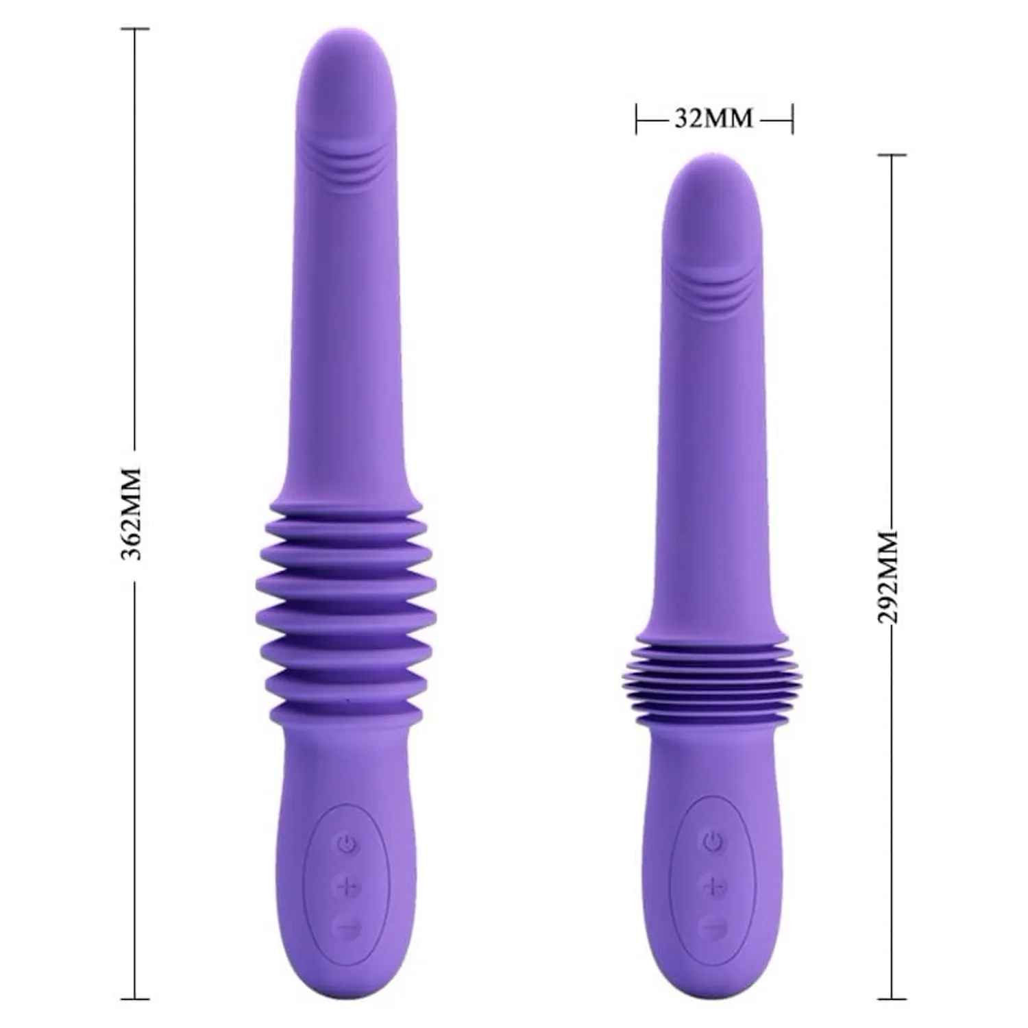 Pretty Love Pazuzu Purple este un vibrator conceput pentru control și manevrabilitate. Mecanismul de pistonare transmite o mișcare în față-înapoi cu extensie de până la 7 cm, reglabilă în 3 moduri. Forma ergonomică și mânerul bine proporționat asigură o prindere stabilă.