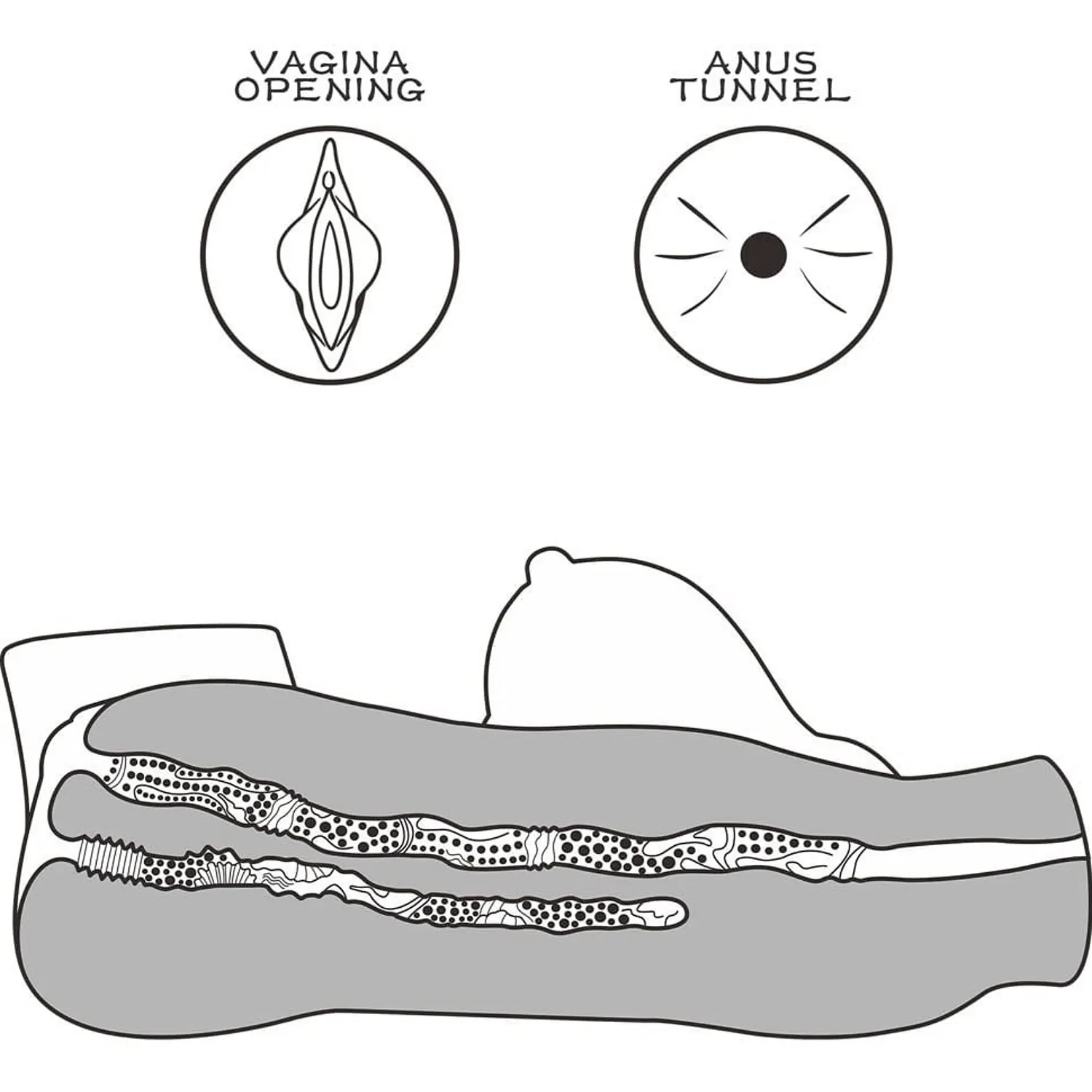 Beneficii și atribute concrete: - Dublu canal: orificiu de frunte și orificiu anal pentru senzații diferite - Tunel texturat cu microprotuberanțe pentru stimulare continuă - Inserție principală adâncă 9.4 - Inserție anală mai strânsă, cu curbe interne pentru intensificare - Material TPE ultra-moale, inodor și non-aderent, sigur pentru piele - Stil ergonomic, ușor de manevrat în poziții variate - ștergere simplă: clătire sub apă și uscare rapidă - Recomandat agent de ungere pe bază de apă; elasticitate crescută după câteva utilizări