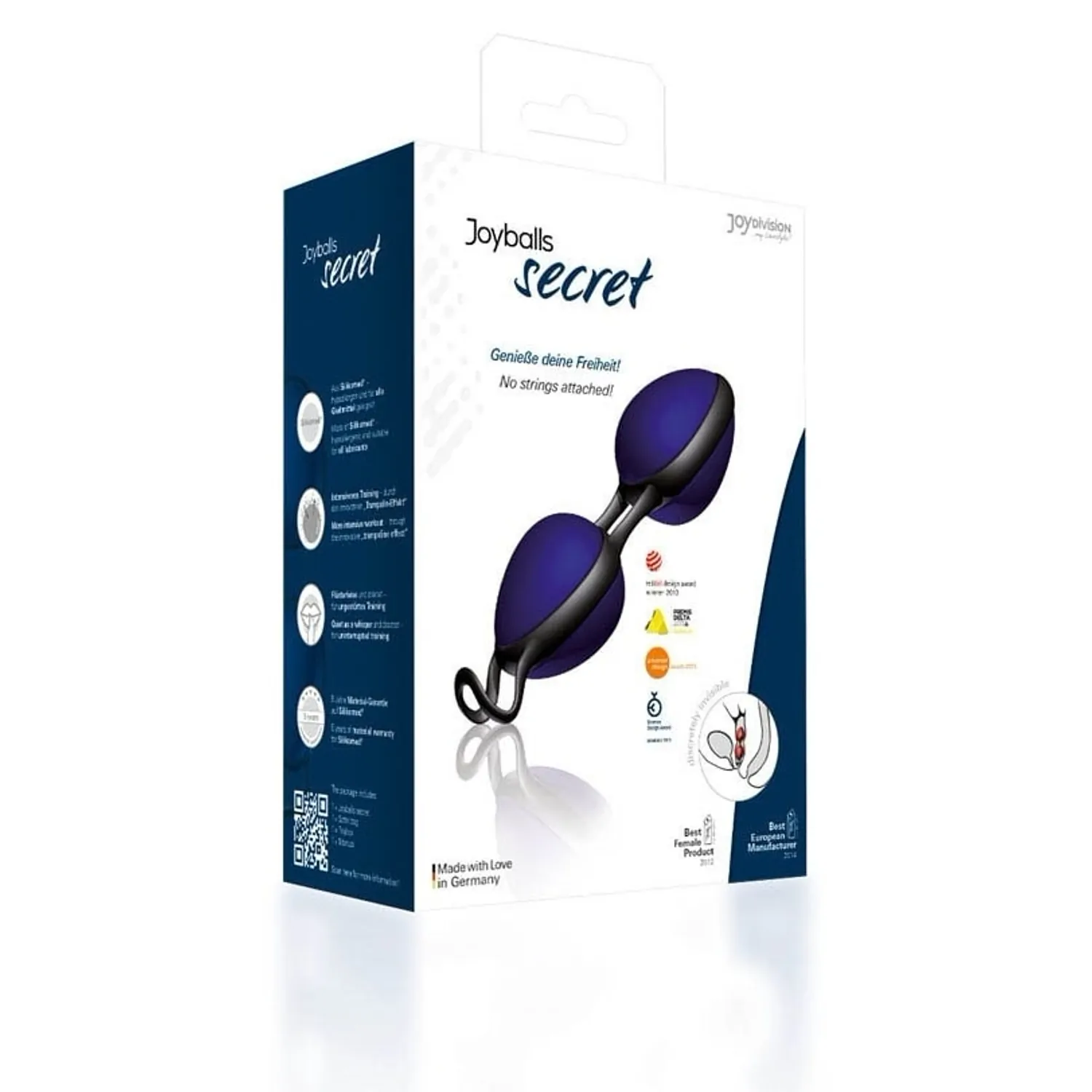 Bile vaginale Joy Secret Blue Negru de la Joydivision — Silikomed hipoalergenic, impermeabile și ușor de curățat. Mărime 11 cm, calibru 3,7 cm. Stil ergonomic cu sistem intern de recuperare; antrenează mușchii pelvieni pentru sprijinire și tonicitate.