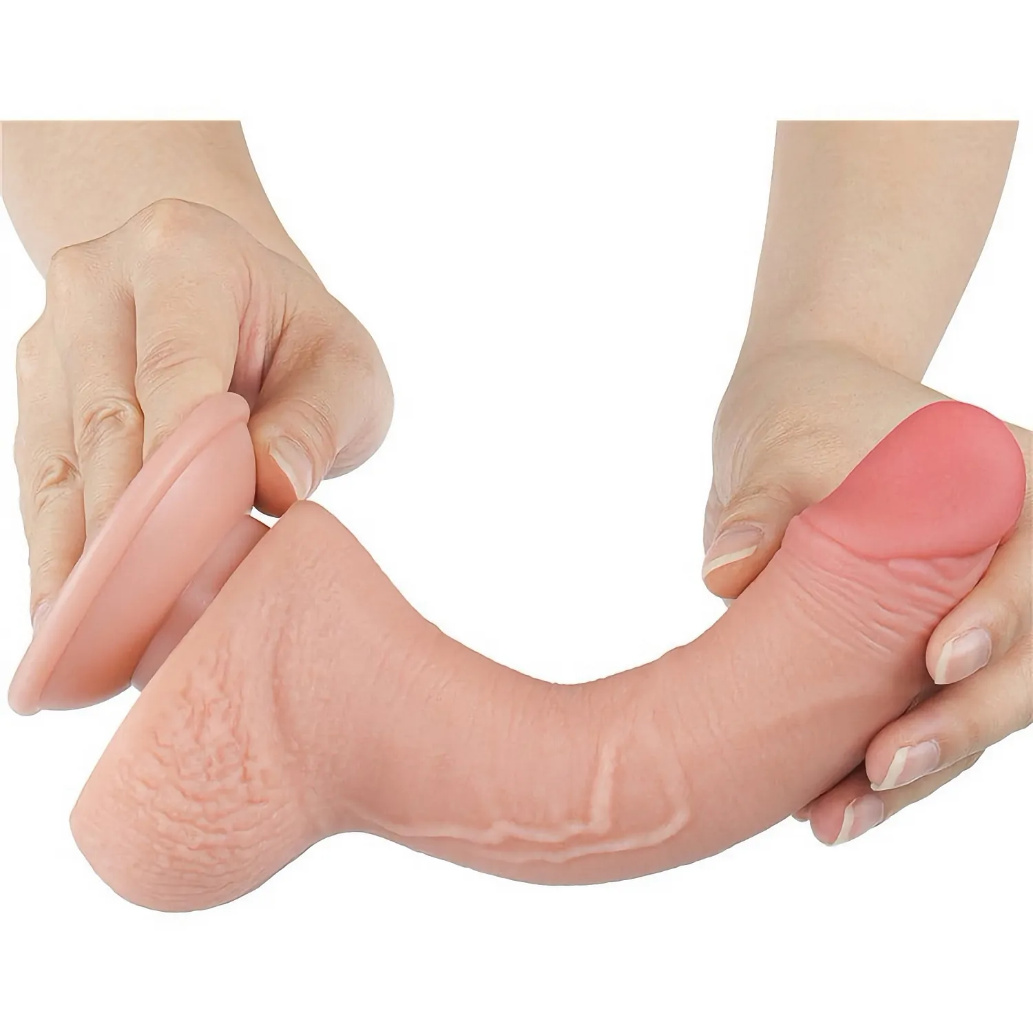 Dildo LoveToy Sliding-Skin 19.5 cm, Ø 3.5 cm — material TPE dual-layer cu miez ferm și exterior moale. Ventuză detașabilă pentru hands-free, flexibil și compatibil cu lubrifianți pe bază de apă. Ambalare discretă.