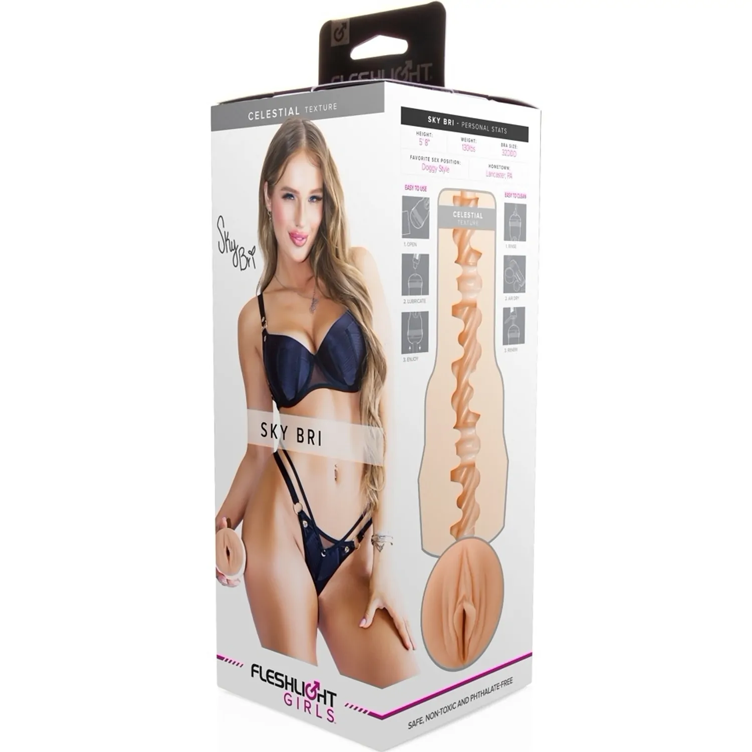 Fleshlight Sky Bri Celestial asigură un manson neted din Real Feel SuperSkin într-o carcasă alb perlat, proiectat pentru confort și control. Modelat după Sky Bri, mansonul reproduce texturi variate pentru stimulare intensă și reglabilitate.